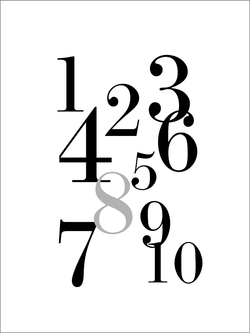 Poster avec les chiffres 1-10 en noir et gris. Avec son expression graphique, le motif convient aussi bien seul dans une chambre d'enfant que dans le reste de la maison et s'adapte à tous les styles de décoration. Le poster peut également être combiné avec le print A-Ö ou d'autres tableaux, par exemple sur le thème des sciences, pour créer un mur de tableaux excitant.