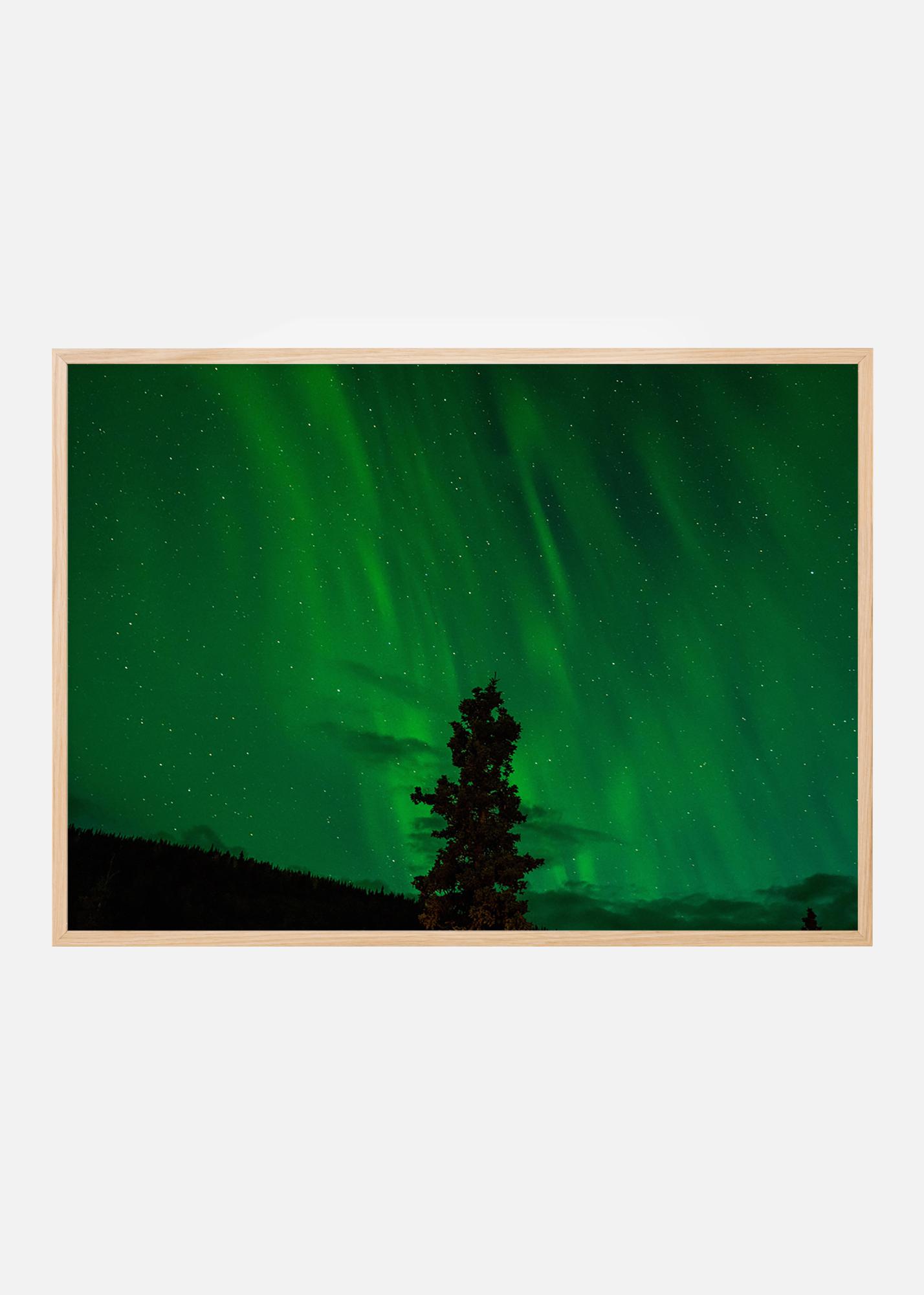 La capacité de l'aurore boréale à fasciner ne cesse jamais, c'est l'un des phénomènes les plus magnifiques de la nature. Une photographie presque abstraite avec une lumière verte éclatante est une œuvre d'art qui prend vraiment sa place sur un mur et devrait avoir l'espace qu'elle mérite. Convient pour être accrochée seule ou combinée avec d'autres motifs graphiques forts qui ne disparaissent pas à côté.
