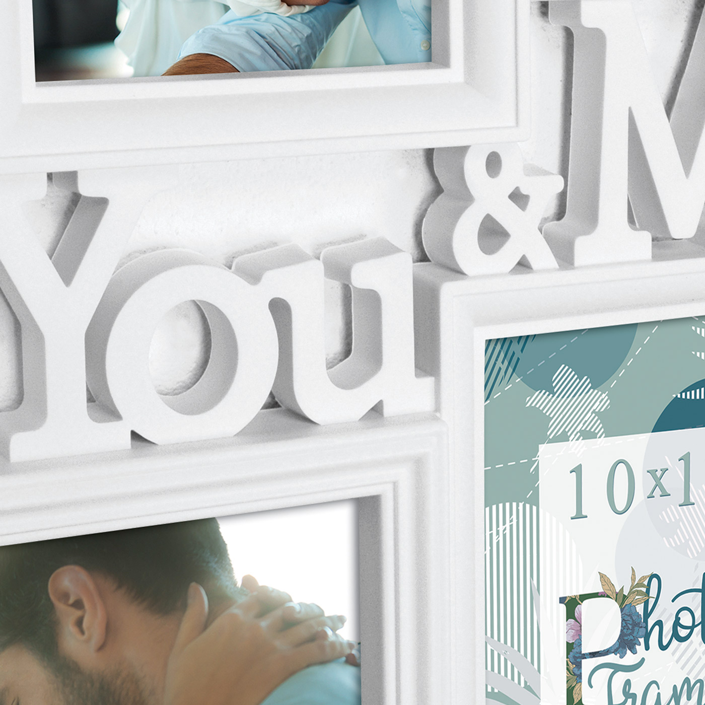 Voici un joli cadre multivues avec de l'espace pour 6 images dans des formats à la fois paysage et portrait. Au milieu est inscrit ”You & Me”, peut-être désirez-vous alors encadrer vos plus belles photos avec votre meilleur ami dans ce cadre ou bien peut-être des photos avec votre partenaire ! Qu'importe votre choix, ce cadre est idéal pour ordonner un groupe de photos souvenirs de vos proches. Le cadre multivues convient aux images de format 10x15 cm. Le cadre se présente dans une esthétique teinte blanche et il est fabriqué en matériau composite. Supports muraux inclus. les dimensions intérieures sont de 47,5x38 cm.