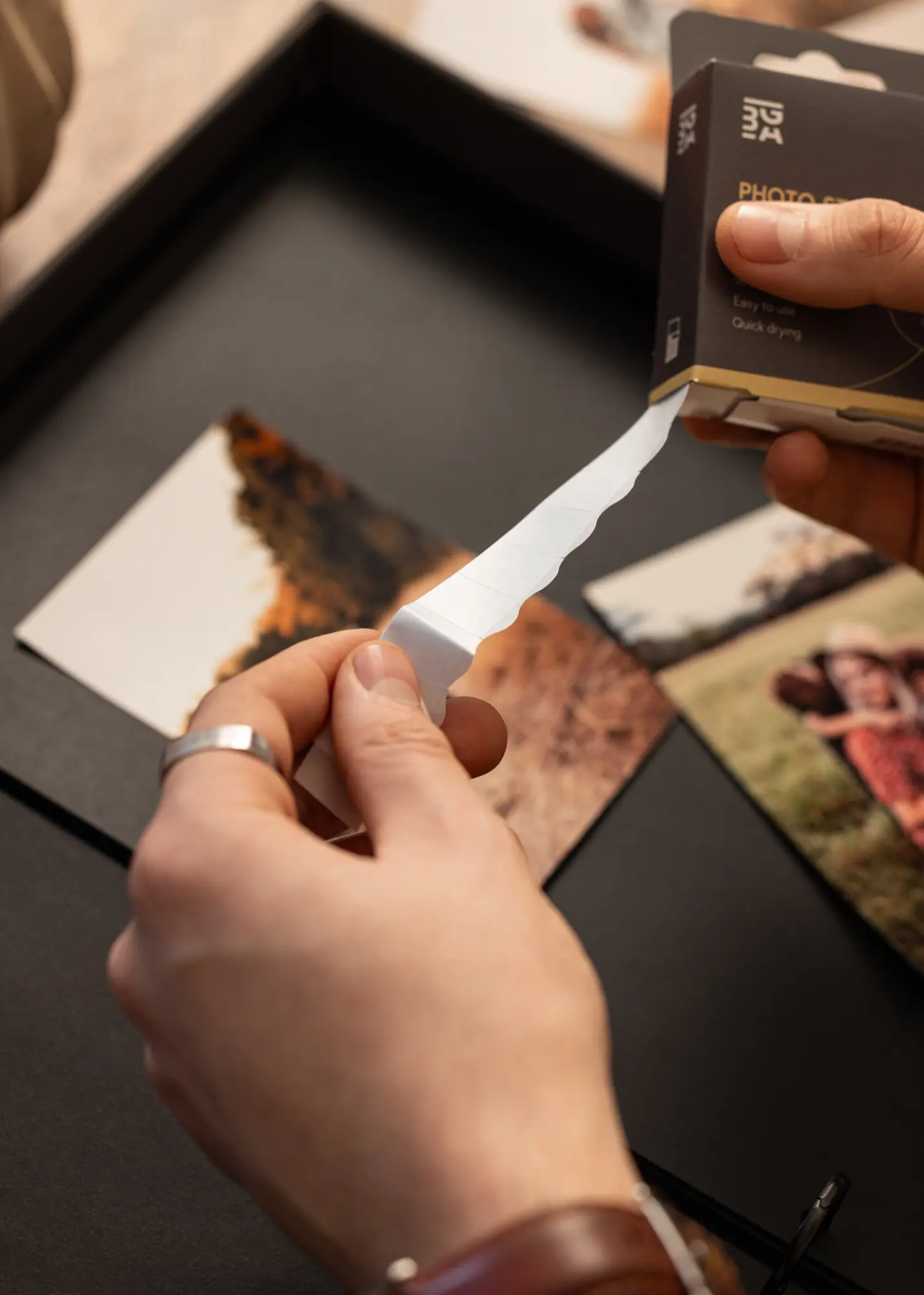 Ce ruban adhésif photo double face facilite et accélère le montage de vos photos ! Une très bonne alternative lorsque vous cherchez une solution durable et que vous voulez éviter de tâcher avec de la colle. L'emballage contient 1000 bandelettes de ruban sans acide de taille 10x12 mm, qui sont douces pour vos images et les maintiennent efficacement en place.