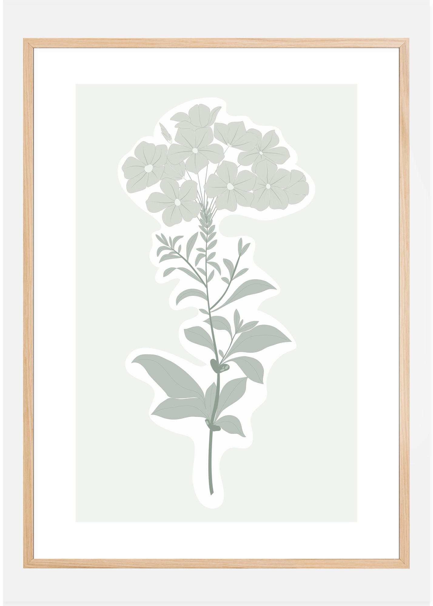 Un poster floral avec une impression botanique simple d'une fleur et de ses feuilles. De douces couleurs gris-vert composent cette tige à fleurs simples, mais élégantes. Encadré de blanc puis de gris,l’affiche donne vie à des illustrations botaniques à l'ancienne. Exposez votre coin jardinage avec cette adorable affiche.