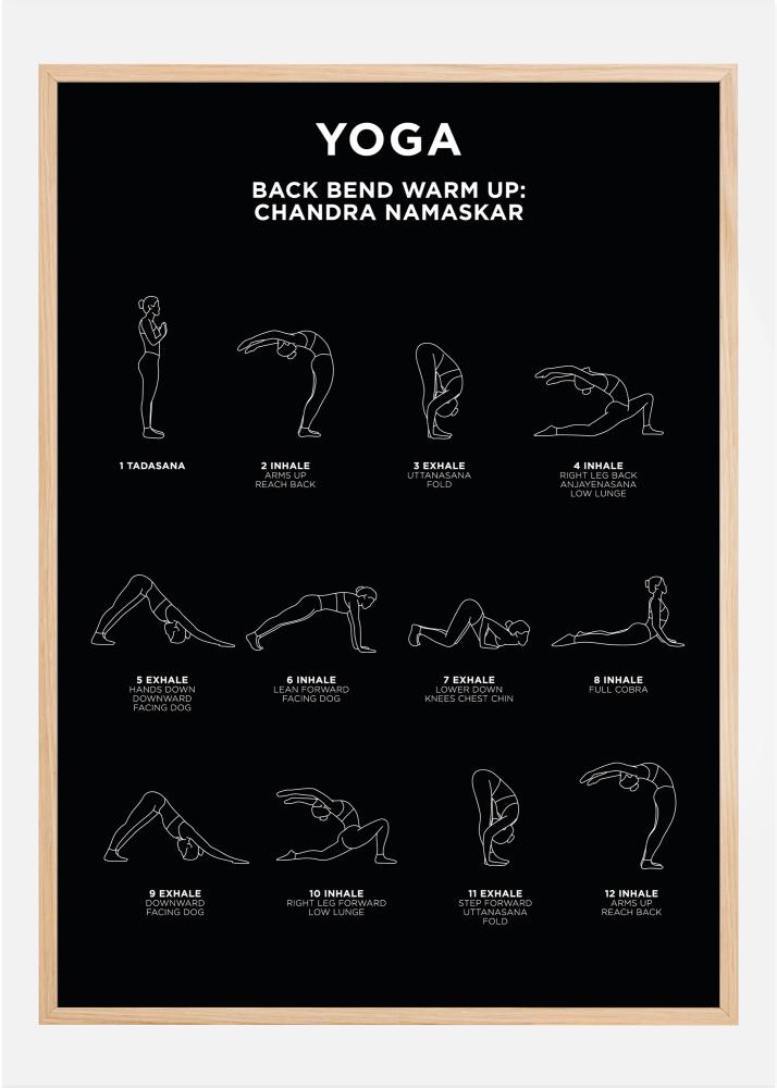 Poster tendance qui peut être avantageusement assorti avec d'autres motifs pour créer un mur de tableaux tendance. Le poster est élégant avec un design épuré, mais sert également de guide lorsque vous souhaitez apprendre l'un des exercices d'échauffement classiques du yoga « Chandra Namaskar ». Le poster est disponible en noir ou blanc et dans une variété de tailles.