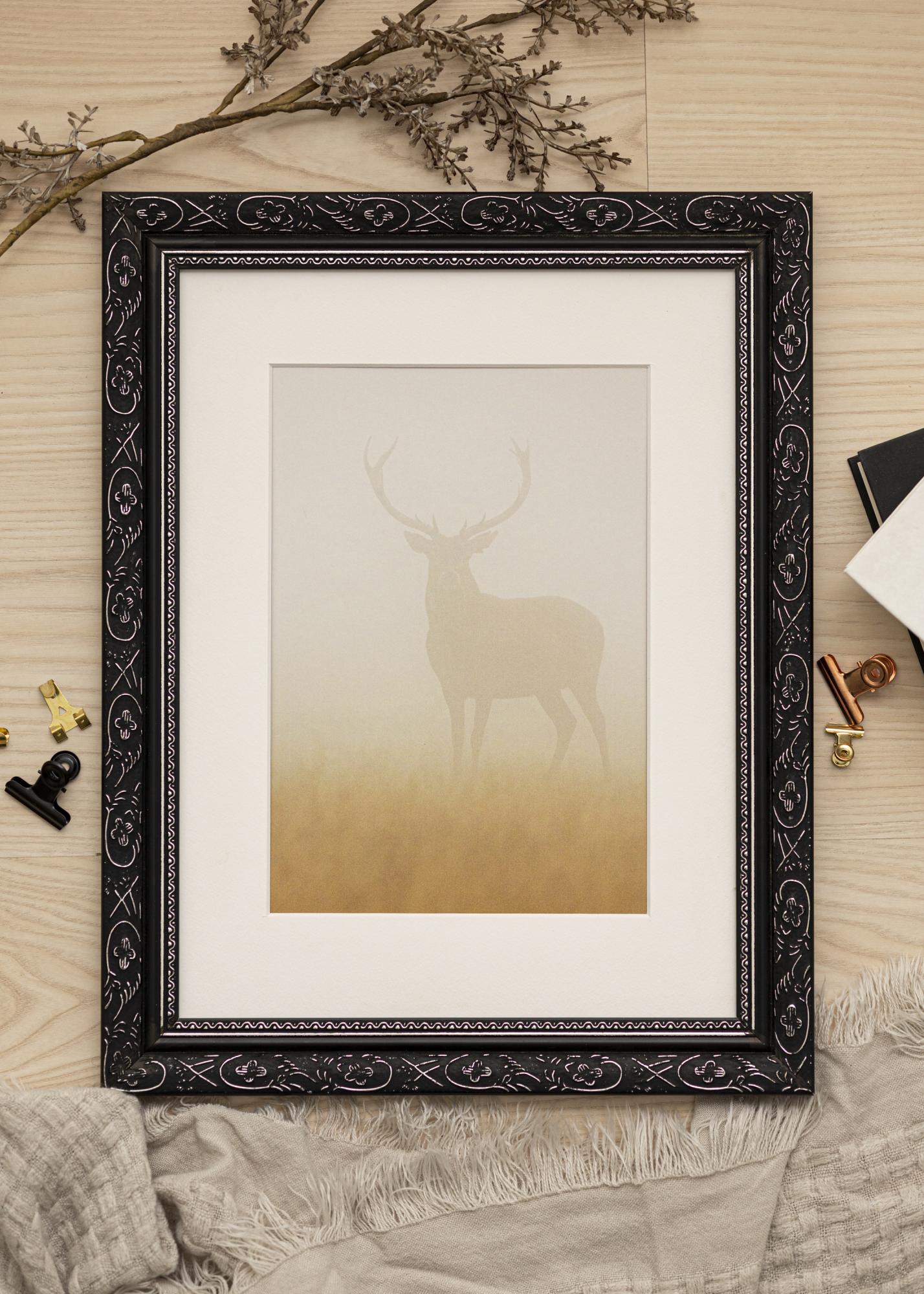 Barock Noir est un magnifique cadre en bois au style rétro avec de ravissants ornements avec des éléments en argent au plus proche du motif. Parfait lorsque vous recherchez un large et sublime cadre en bois dans un style à l'ancienne. Un bon choix pour les agrandissements que vous aimez tout particulièrement.