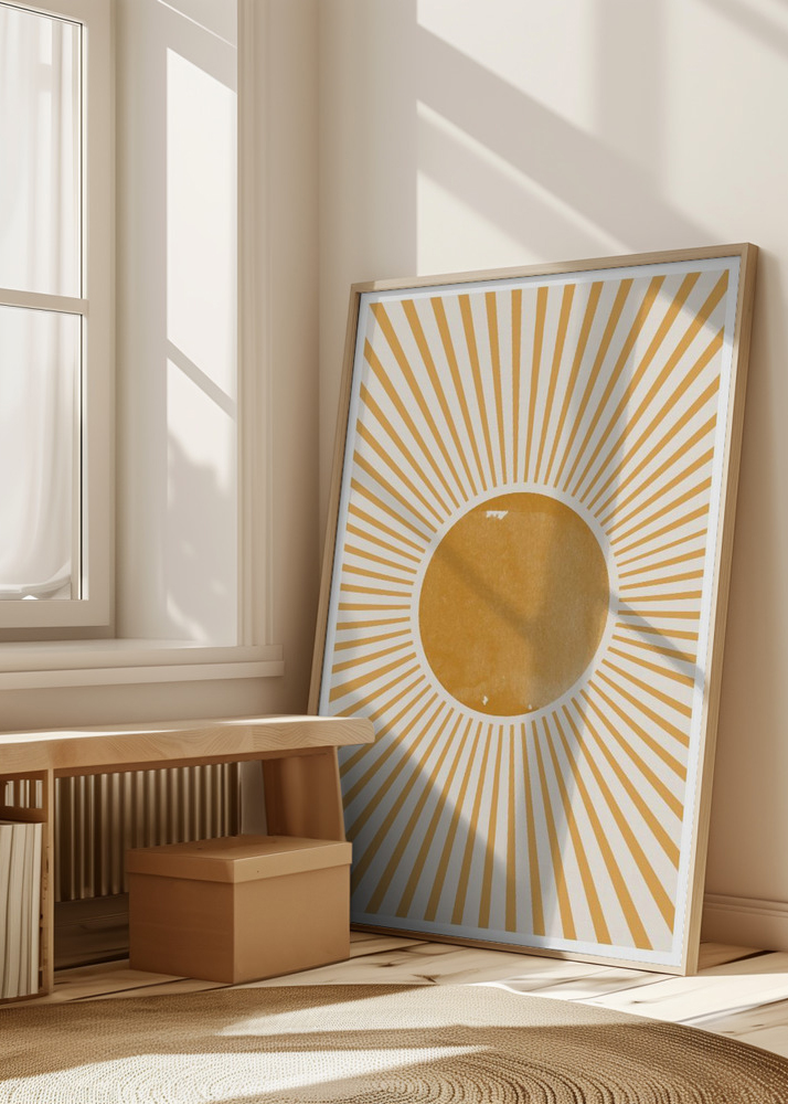Cette impression peut égayer n'importe quelle pièce et apporter une touche de boho-chic à votre décoration. Elle est parfaite pour ceux qui souhaitent introduire un peu de la beauté de la nature et une sensation de lumière dans leur maison. Son symbole universel du soleil en fait un ajout bienvenu dans de nombreux environnements décoratifs différents, d'un salon à un espace de yoga ou une chambre d'enfant.