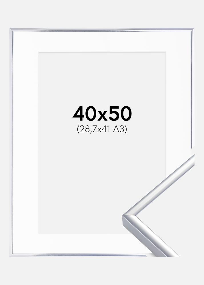 Cadre Aluminium Brillant Argent 40x50 cm - Passe-partout Blanc 29,7x42 cm