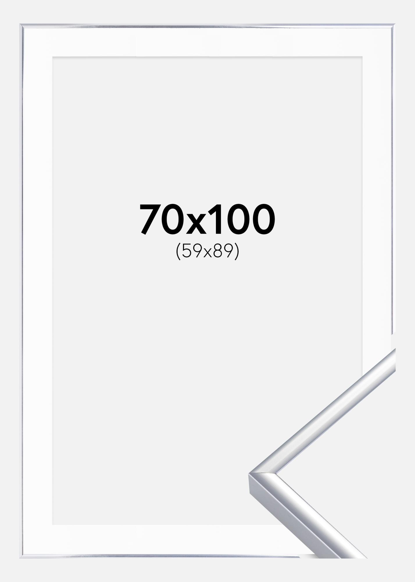 Cadre Aluminium Brillant Argent 70x100 cm - Passe-partout Blanc 60x90 cm