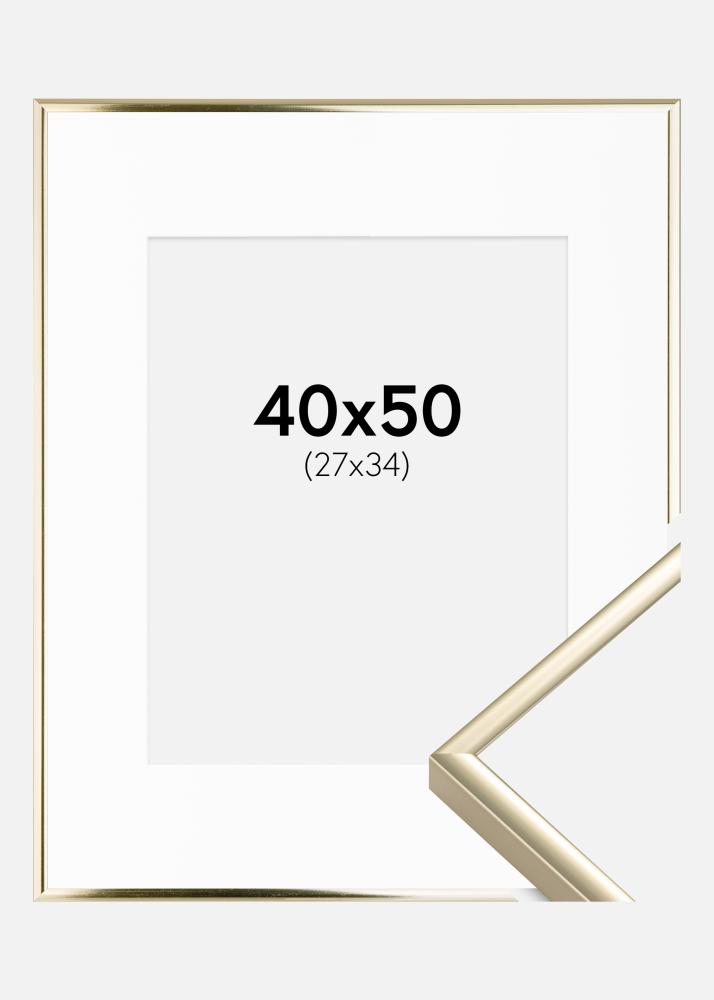 Cadre Aluminium Brillant Or 40x50 cm - Passe-partout Blanc 28x35 cm