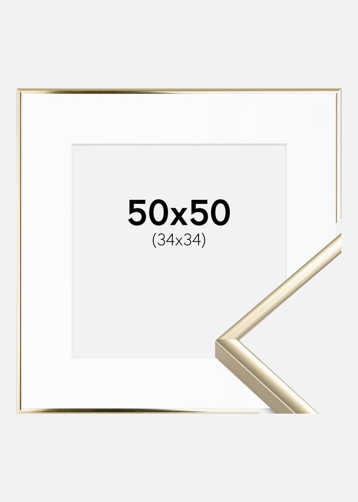 Cadre Aluminium Brillant Or 50x50 cm - Passe-partout Blanc 35x35 cm