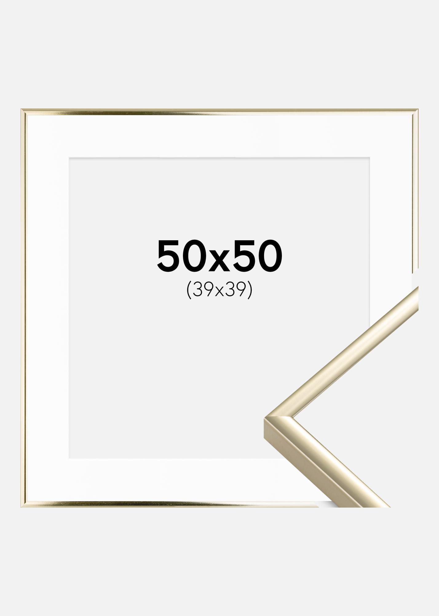 Cadre Aluminium Brillant Or 50x50 cm - Passe-partout Blanc 40x40 cm