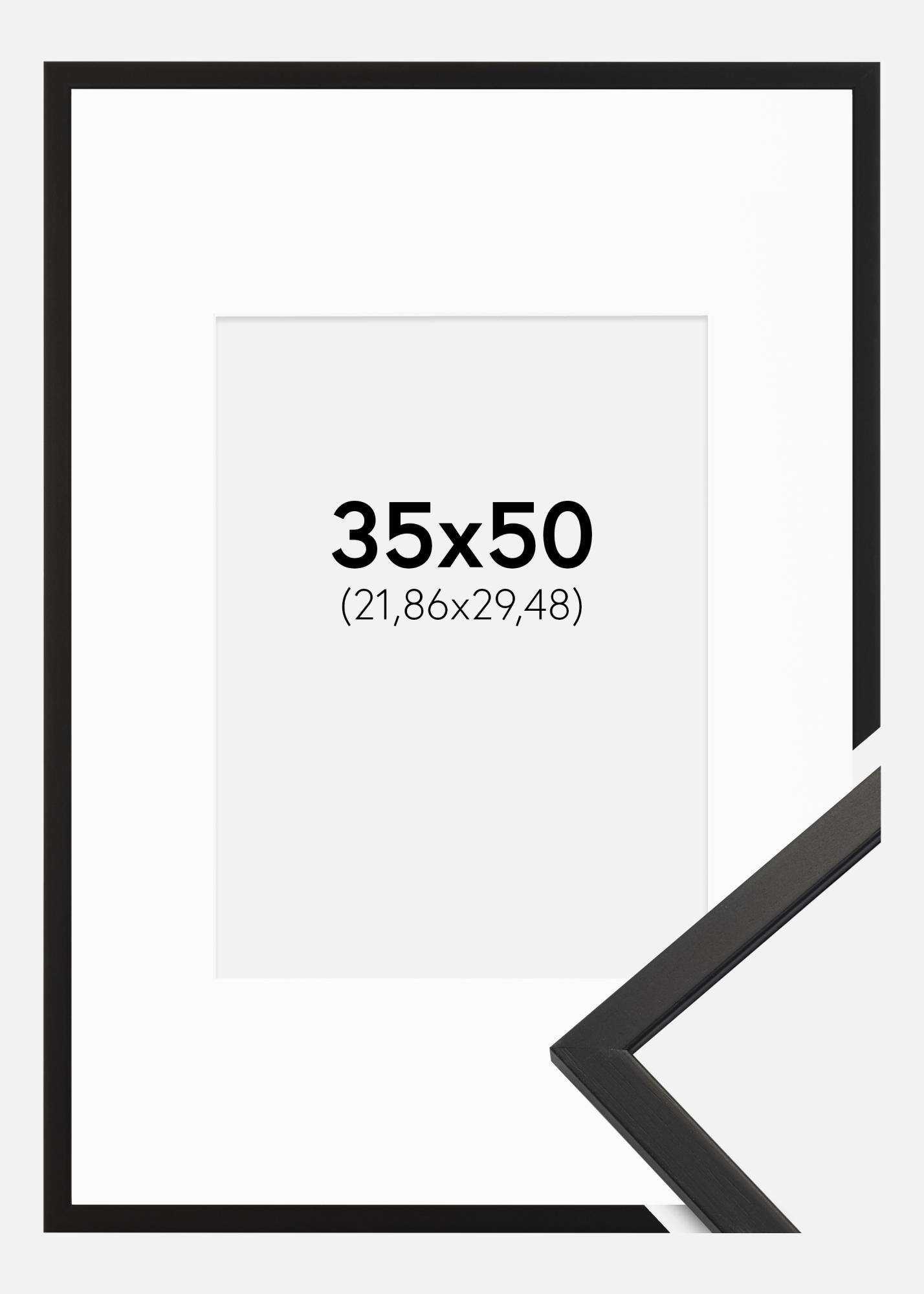 Forfait comprenant le cadre photo et le passe-partout blanc assorti. Sur la photo du produit, vous pouvez voir les dimensions du cadre (indiquées en gras) et les dimensions intérieures du passe-partout (indiquées entre parenthèses). Notez que les dimensions intérieures du passe-partout se doivent d'être toujours 1 cm inférieures par rapport à la taille de l'image que vous souhaitez encadrer.