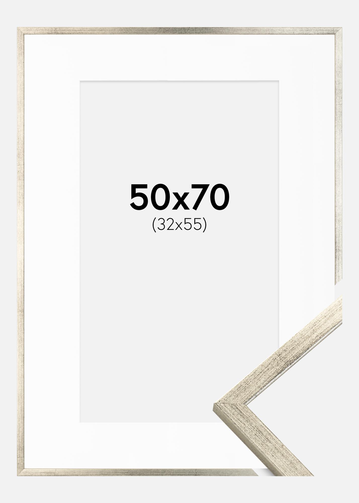 Cadre Galant Argent 50x70 cm - Passe-partout Blanc 33x56 cm