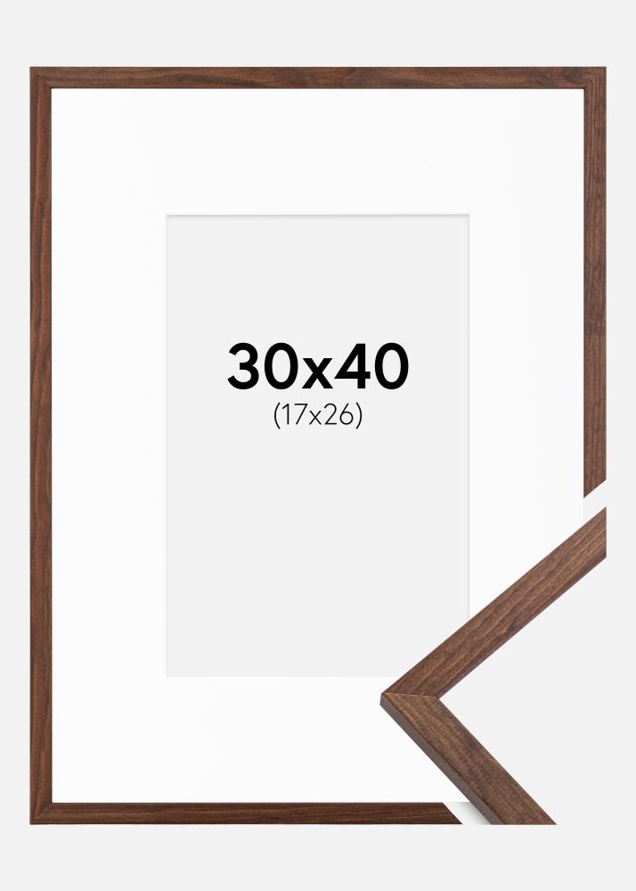 Cadre Galant Noyer 30x40 cm - Passe-partout Blanc 18x27 cm