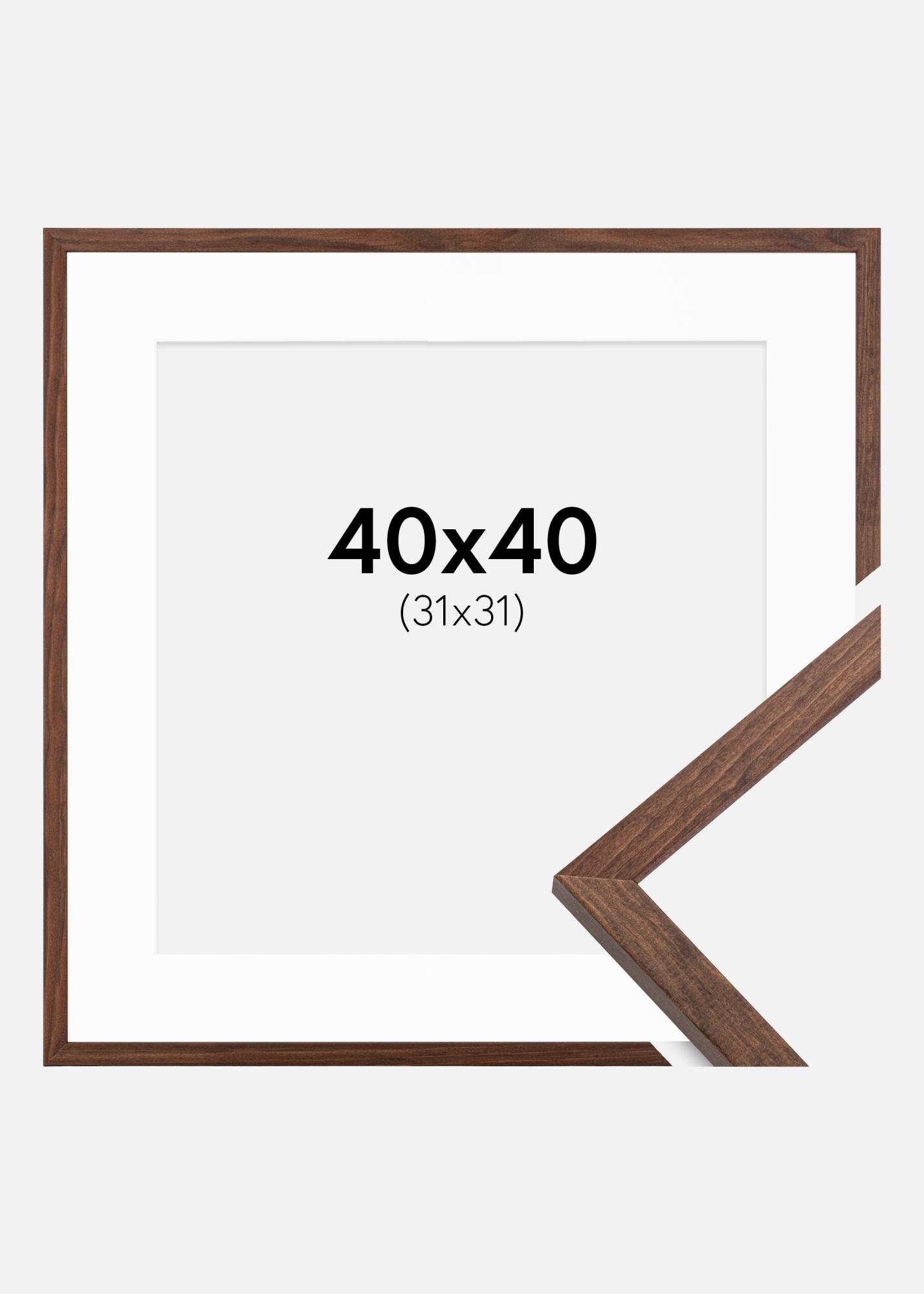 Cadre Galant Noyer 40x40 cm - Passe-partout Blanc 32x32 cm
