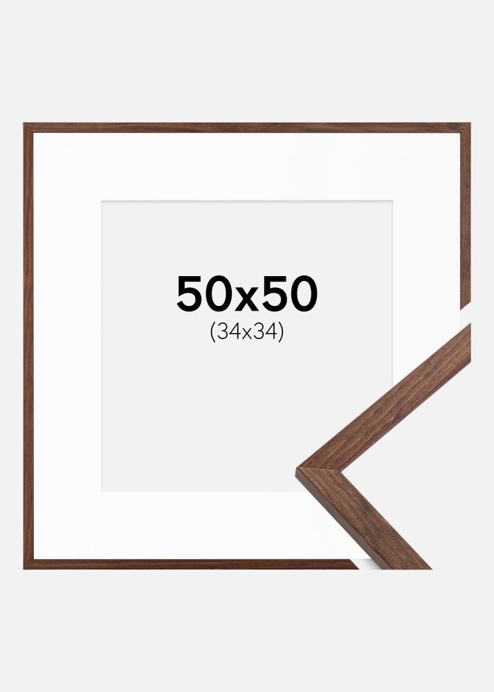 Cadre Galant Noyer 50x50 cm - Passe-partout Blanc 35x35 cm