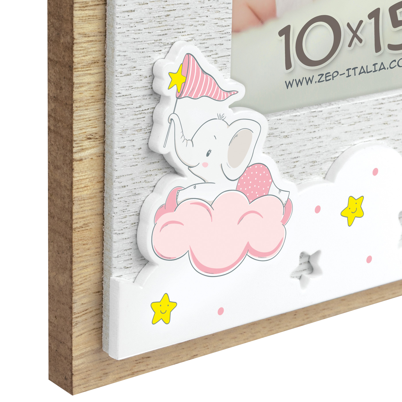 Transformez votre maison en une galerie personnelle avec ce charmant cadre photo qui met en valeur les petits moments de la vie. Avec des dimensions de 10 x 15 cm, il est parfait pour conserver les souvenirs des plus petits. Ce cadre est orné d'un adorable thème pour bébés, comprenant un éléphant mignon, des motifs roses et de petites étoiles qui créent ensemble une atmosphère chaleureuse et aimante.