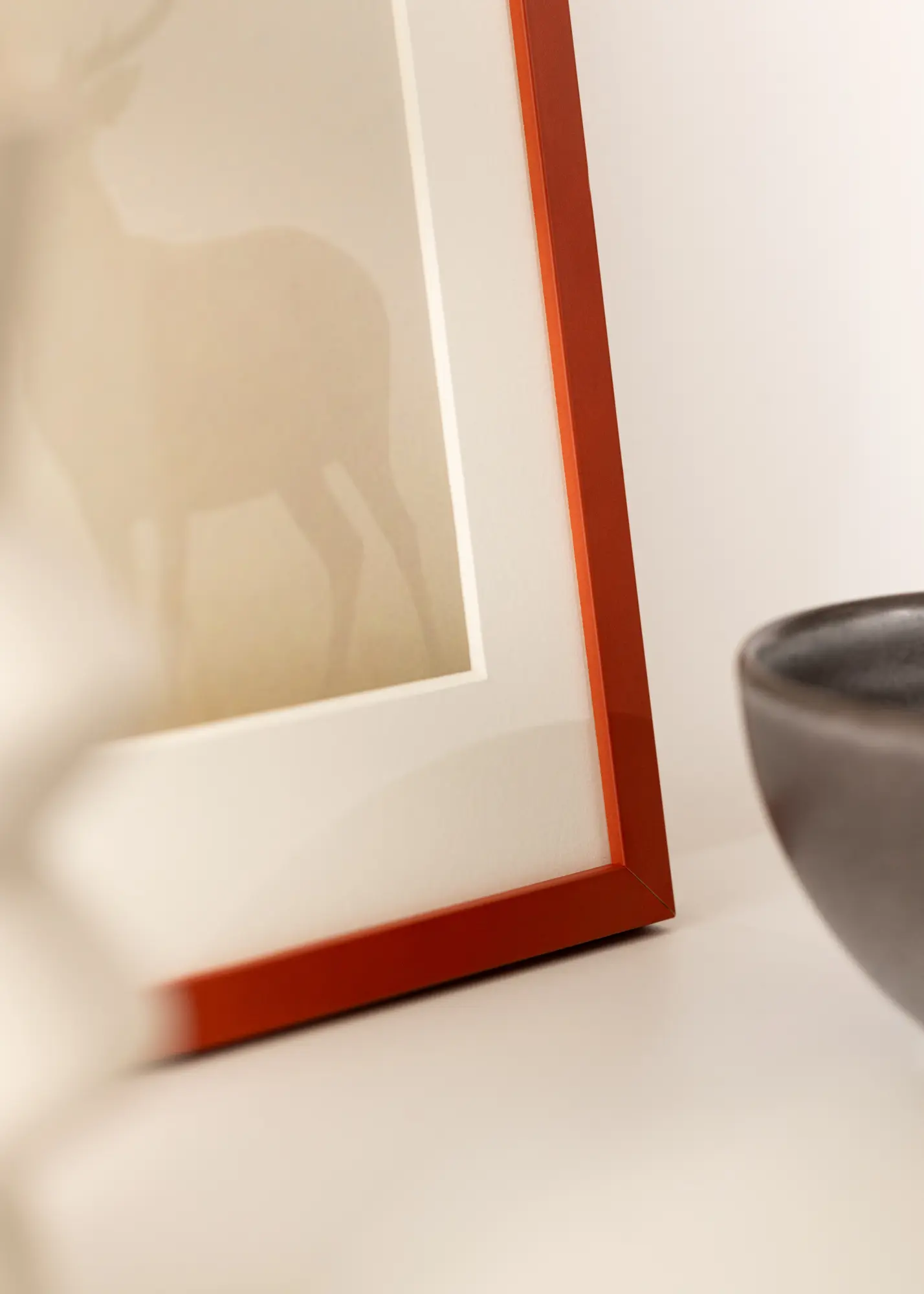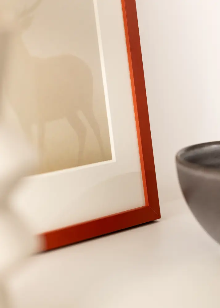 Un beau cadre en bois avec un profil carré moderne où la largeur de la baguette et la profondeur de la baguette mesurent 15 mm. Le cadre appartient à la série NordicLine du danois Incado et a un design très épuré et élégant. Le cadre photo est recouvert d'aluminium, mais joliment mat, dans une teinte rouge rouille terreuse, ce qui signifie que le cadre s'harmonise bien avec les tons neutres et naturels tout en devenant une touche de couleur sobre dans votre maison..