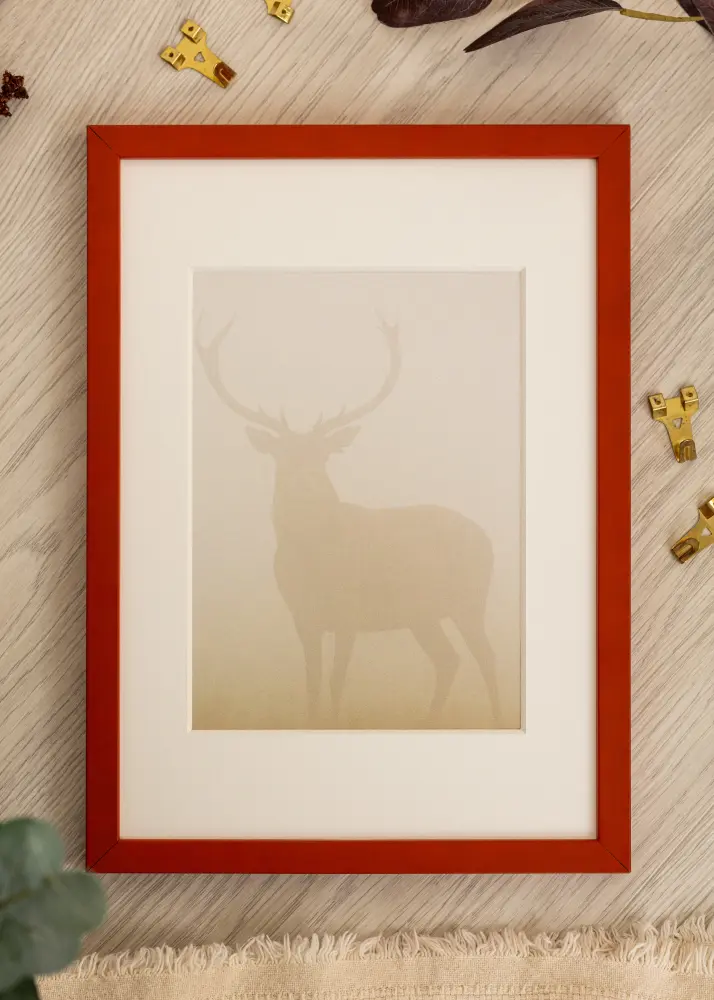 Cadre en bois avec surface mate dans une belle teinte rouge rouille