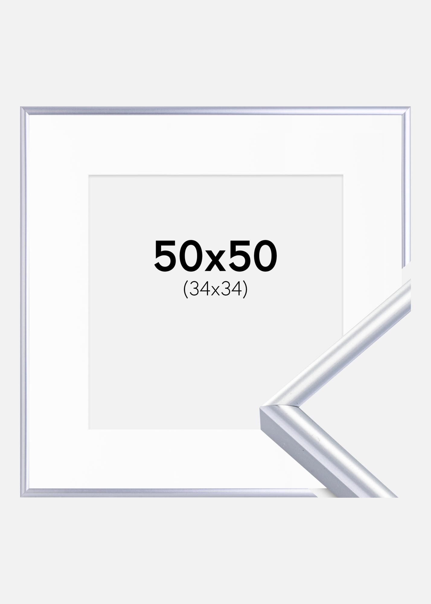 Cadre Victoria Argent 50x50 cm - Passe-partout Blanc 35x35 cm