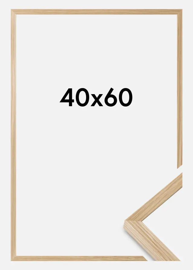 Cadre en bois élégant avec une bordure faisant un angle de 45° vers le motif. Fabriqué en Suède