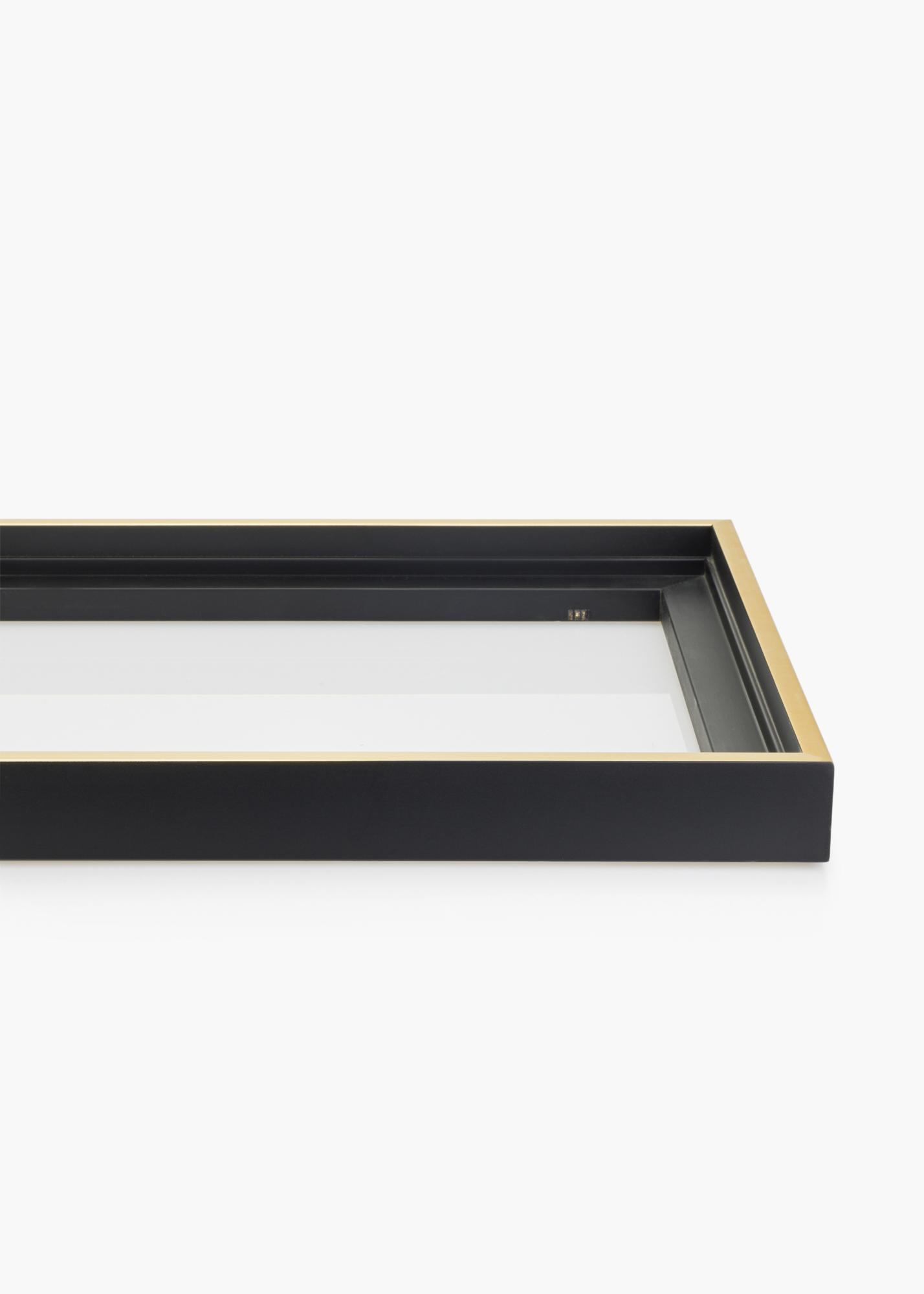 Tacoma est un cadre pour toile en noir et or, il est idéal pour ceux qui sont à la recherche d'un encadrement luxueux pour leurs peintures. La baguette a un profil droit, une fine largeur de 10 mm et une couleur dorée, ce qui ajoute à l'élégance du cadre. Vous y insérez votre tableau en le plaçant sur le bord facetté situé à l'intérieur du cadre. Vous vissez ensuite la toile par l'arrière. Un petit espace va se créer entre le cadre et la peinture, ce qui apporte une belle impression aux peintures dont la toile peinte s'étend visiblement sur les deux petits côtés du châssis.