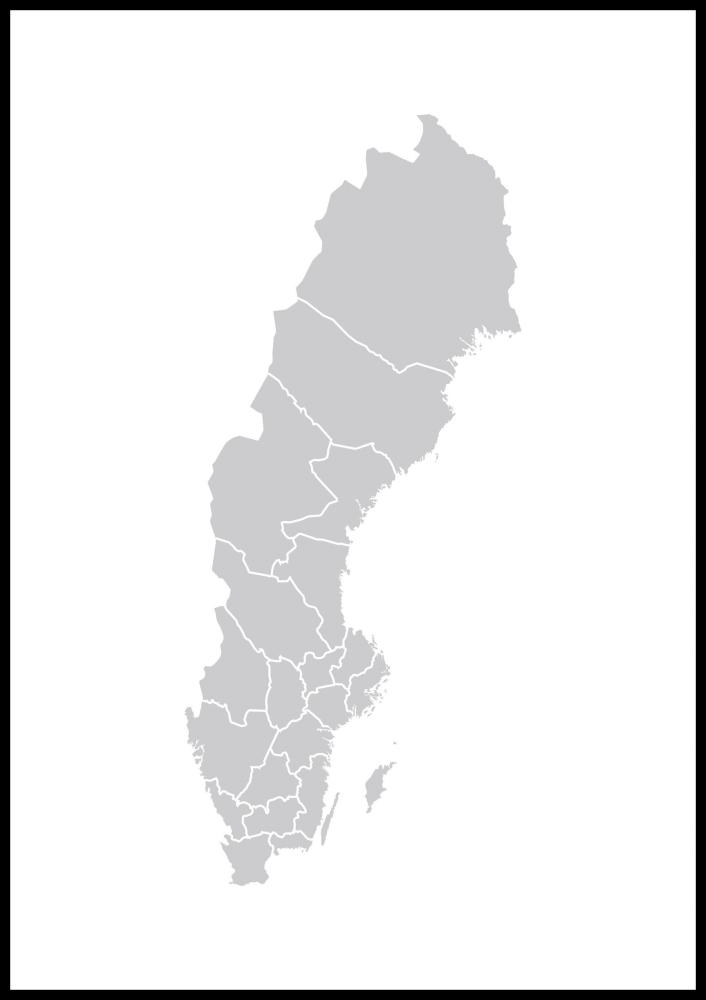 Carte de la Suède Gris Poster (21x29,7 cm (A4))