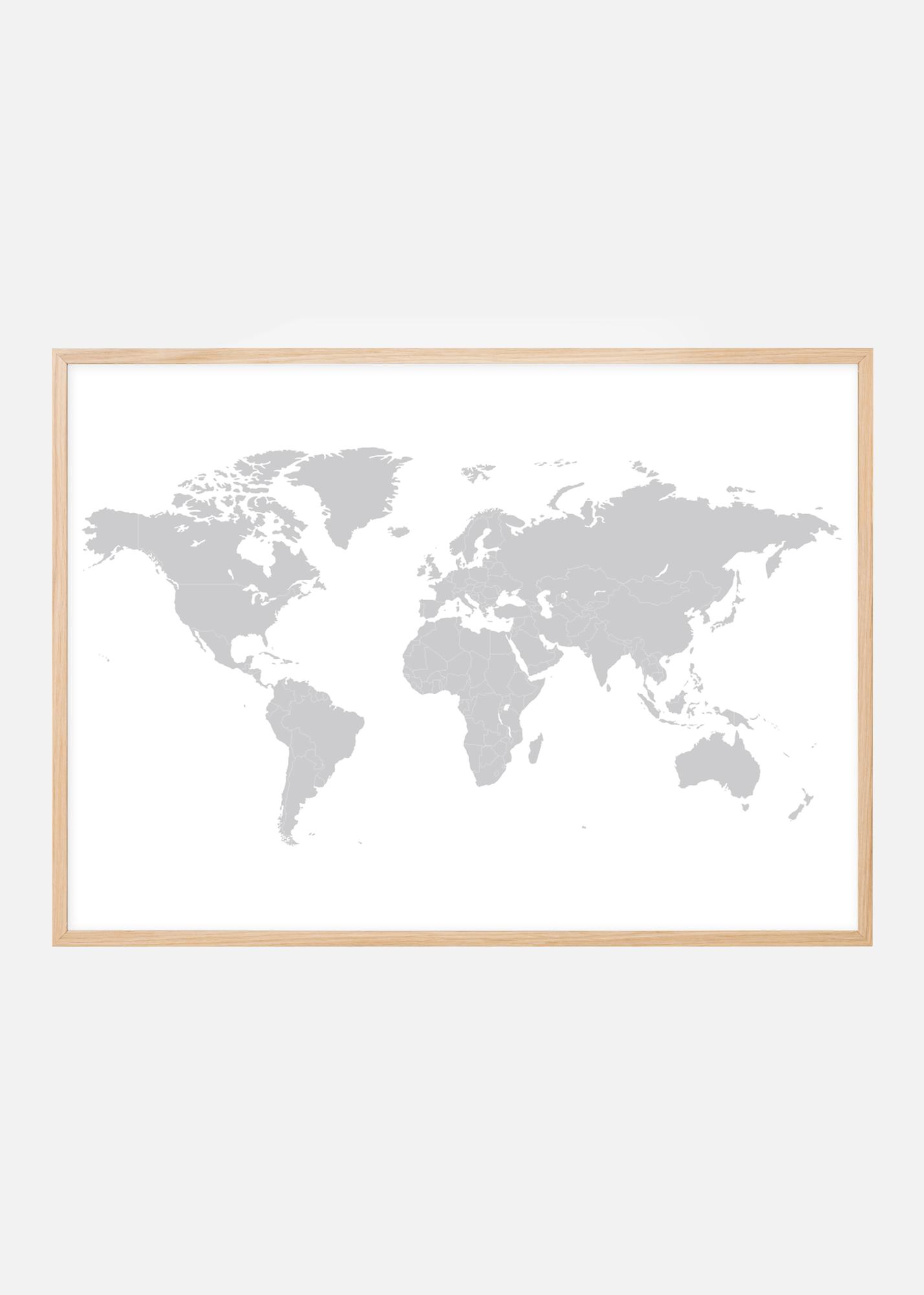Impression graphique d'une carte du monde dans une agréable couleur grise qui est élégante à accrocher avec d'autres prints sur un mur de tableaux. L'impression épurée s'adapte à tous types d'environnements, tant dans les espaces publics qu'à la maison. Avec le choix du cadre pour compléter le poster, il peut s'intégrer dans tous les styles de décoration et les schémas de couleurs. Le poster est un cadeau apprécié à offrir à celui qui a besoin de décorer ses murs.