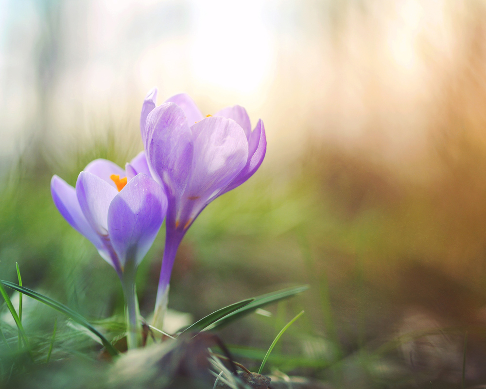 Une image charmante du peut-être plus coloré adorateur du printemps, le crocus. Le fond estompé en couleur complémentaire donne un élan aux fleurs et une harmonie à la photographie. Convient à ceux qui veulent de la joie de couleur dans leur maison et il est toujours agréable d'utiliser une nuance de la peinture comme couleur d'accent dans le reste de la décoration. Associez-le volontiers avec d'autres motifs végétaux pour créer une sensation d'unité dans la pièce.