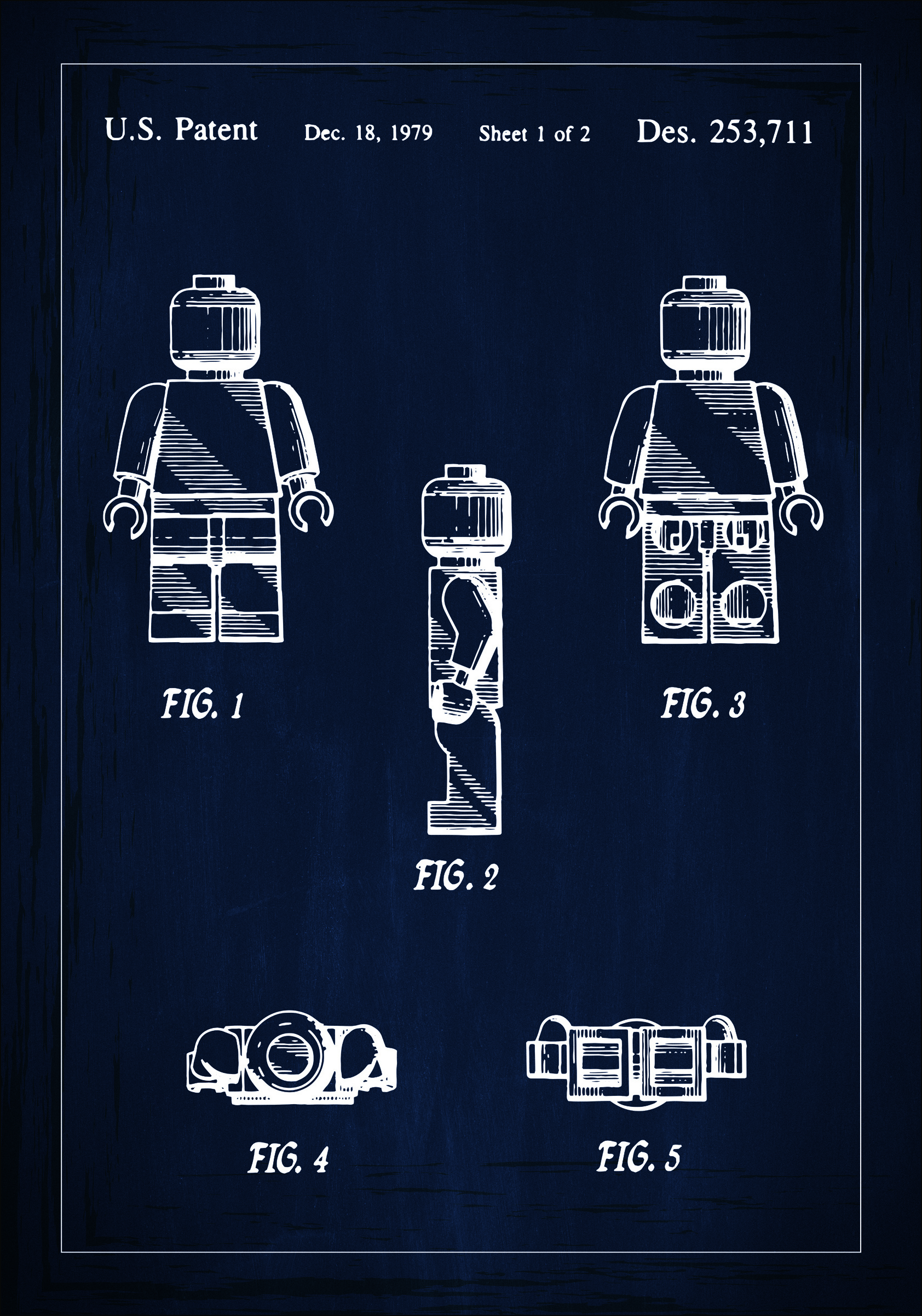 Cette affiche de brevet unique présente une figurine de jouet classique de Lego qui occupe une place spéciale dans le cœur des enfants et des adultes. Le motif détaillé est une copie authentique du dessin de brevet original, déposé le 18 décembre 1979, avec le numéro de brevet Des. 253,711. Artistiquement présentée sur un fond sombre, l'illustration technique se transforme en une œuvre d'art élégante qui rend hommage à l'innovation et au design. Parfait pour les amateurs de décoration ou les collectionneurs, cette affiche de brevet est un hommage à la créativité intemporelle et à la fantaisie.