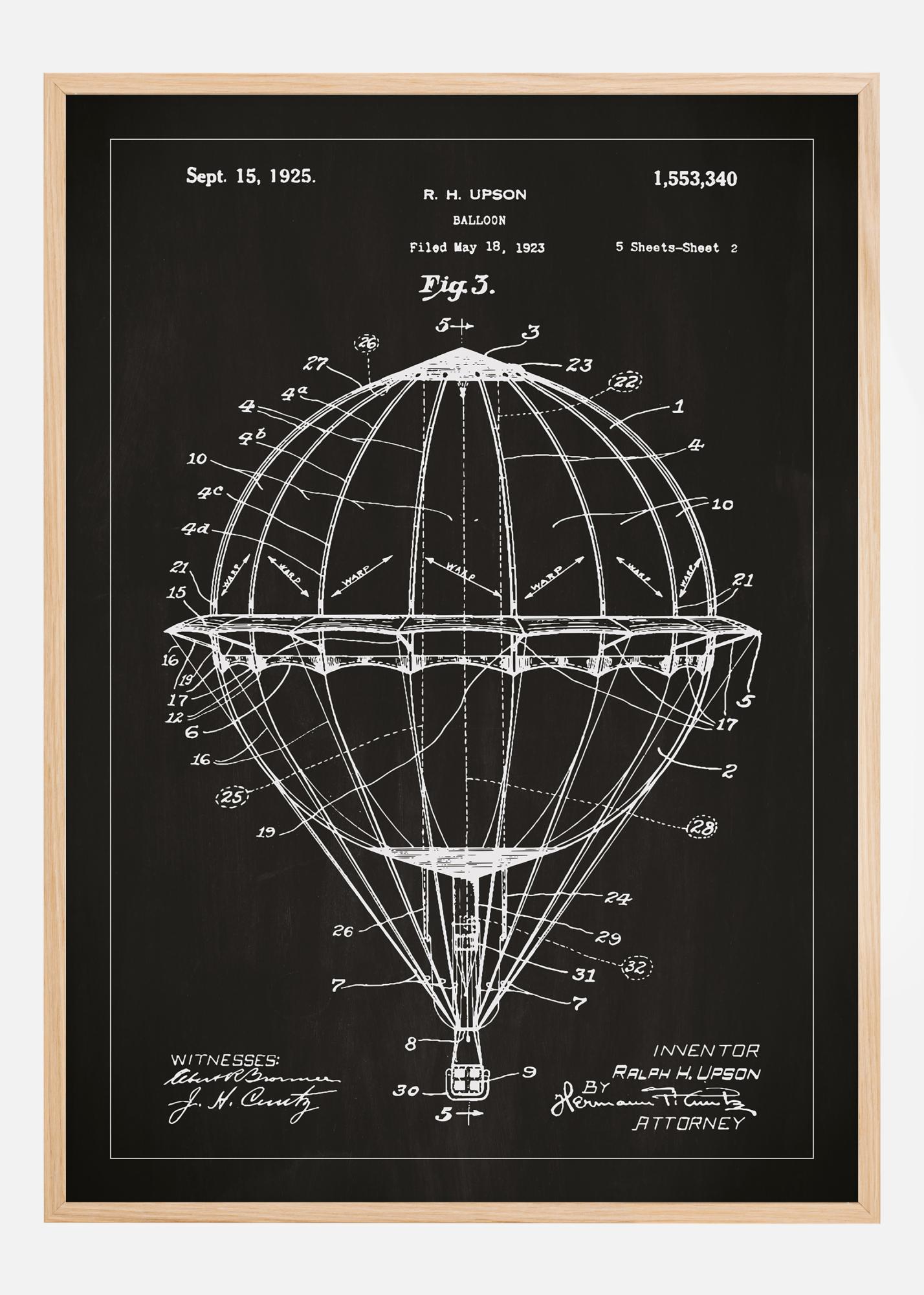 Dessin de brevet - Montgolfière - Noir Poster