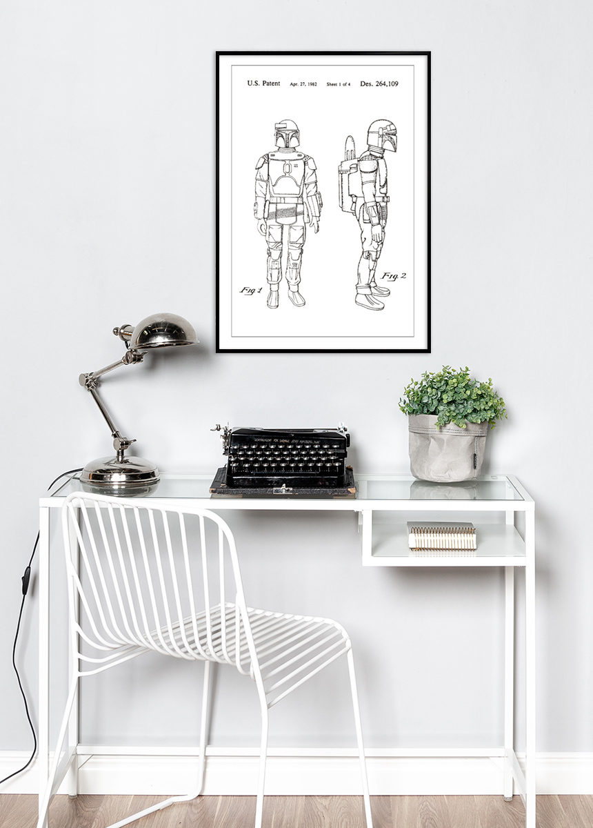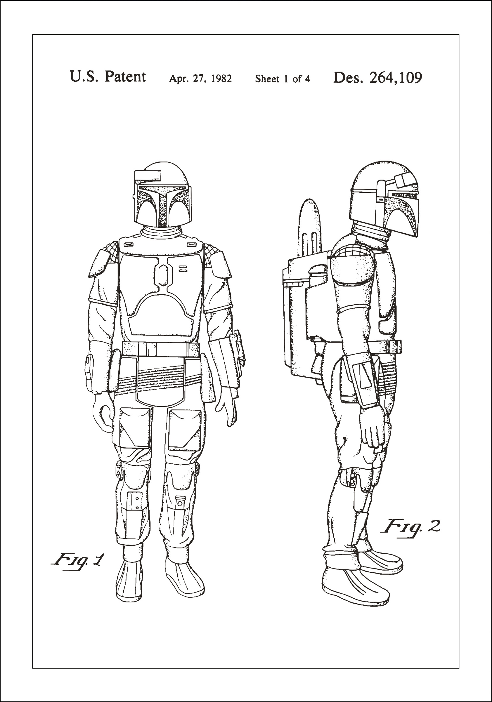 Dessin de brevet - Star Wars - Boba Fett - Blanc Poster (21x29,7 cm (A4))