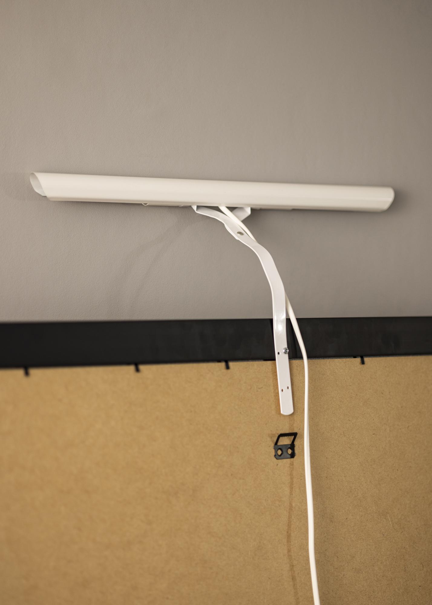 Pour quels tableaux convient l’éclairage ? Normalement, vous attachez l'éclairage de tableau à l'arrière du cadre, mais l'inconvénient est que cela nécessite un cadre en bois (certains cadres en composite fonctionnent également bien) avec un profil large pour pouvoir visser dans le cadre. Avec notre support mural, vous n'avez pas à y penser et pouvez installer simplement votre éclairage de tableau directement sur le mur derrière le tableau.