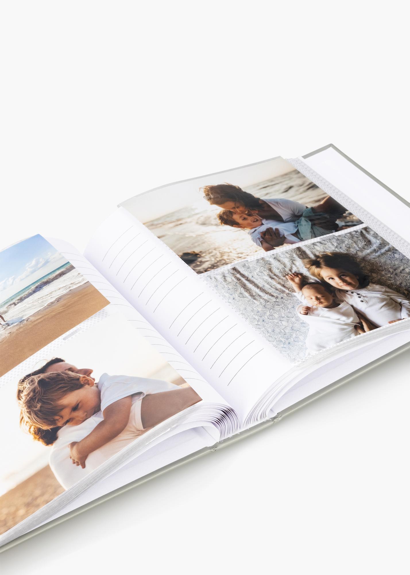 Les couvertures de l'album sont habillées d'une couleur grise intemporelle qui s'intègre dans tous les foyers et styles de décoration. Les pages blanches offrent un arrière-plan propre et frais pour vos photographies, tandis que l'orientation horizontale met en valeur l'unicité de chaque image. Pour chaque photo, il y a également un champ d'écriture approprié où vous pouvez noter des détails mémorables ou des dates, rendant l'album à la fois personnel et informatif.