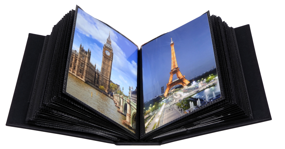 L'album a de solides couvertures extérieures dans une nuance noir mat. Les feuilles d'album noires peuvent contenir 1 image par page et sont bien entendu sans acide.
