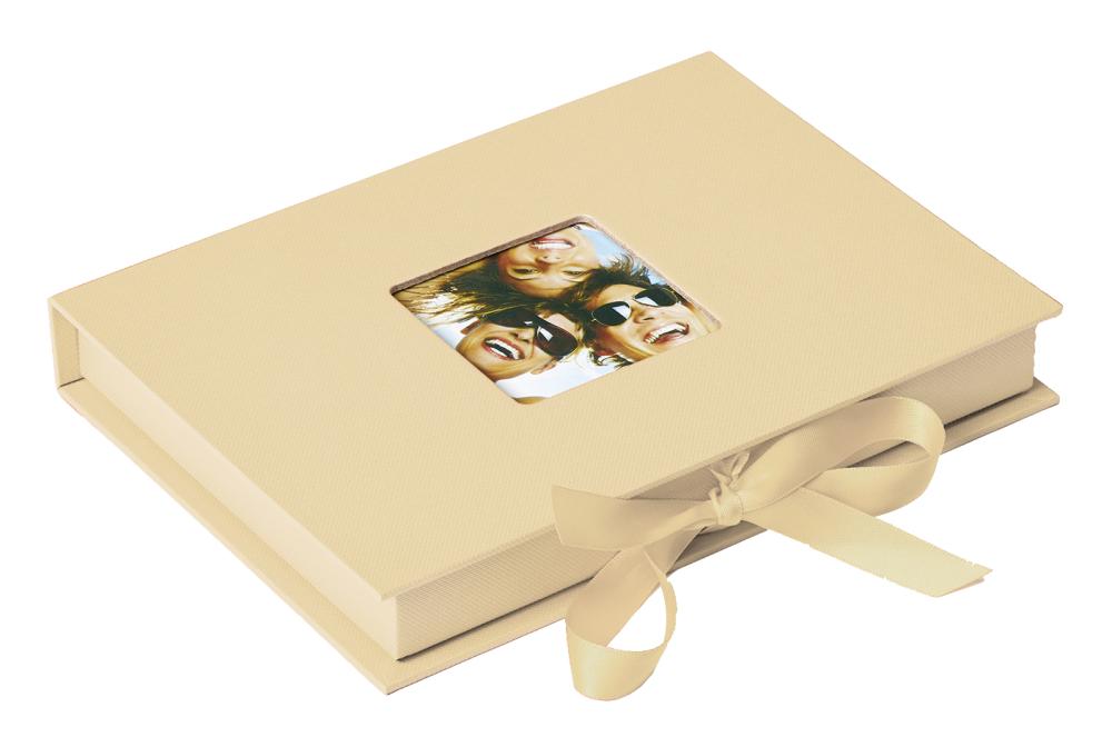 Sublime boîte à photos au design moderne dans une magnifique couleur crème, pouvant contenir 70 images dans des tailles allant jusqu'à 13x18 cm. Sur le dessus de la boîte, il y a de la place pour votre propre photo (6x6 cm) afin que vous puissiez facilement personnaliser votre boîte à photos.