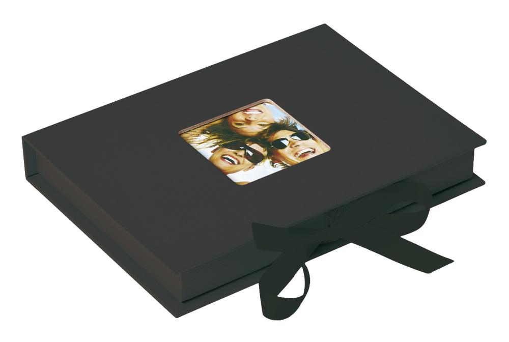 Sublime boîte à photos au design moderne dans une magnifique couleur noire, pouvant contenir 70 images dans des tailles allant jusqu'à 13x18 cm. Sur le dessus de la boîte, il y a de la place pour votre propre photo (6x6 cm) afin que vous puissiez facilement personnaliser votre boîte à photos.