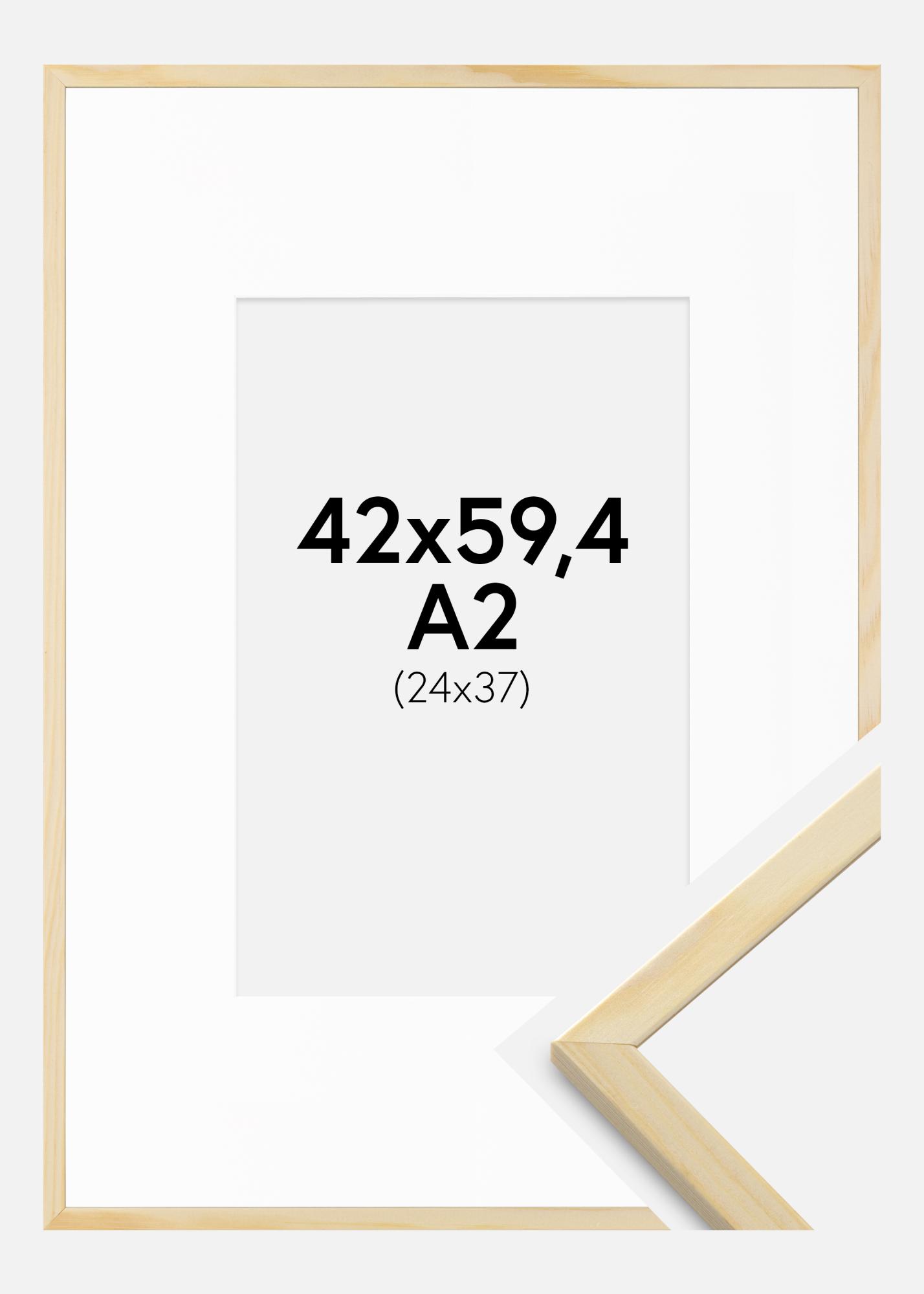Cadre Galant Pin 42x59,4 cm (A2) - Passe-partout Blanc 25x38 cm