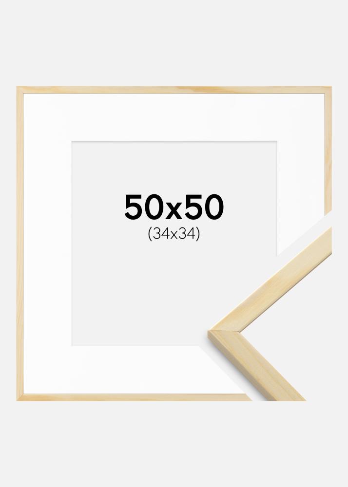 Cadre Galant Pin 50x50 cm - Passe-partout Blanc 35x35 cm