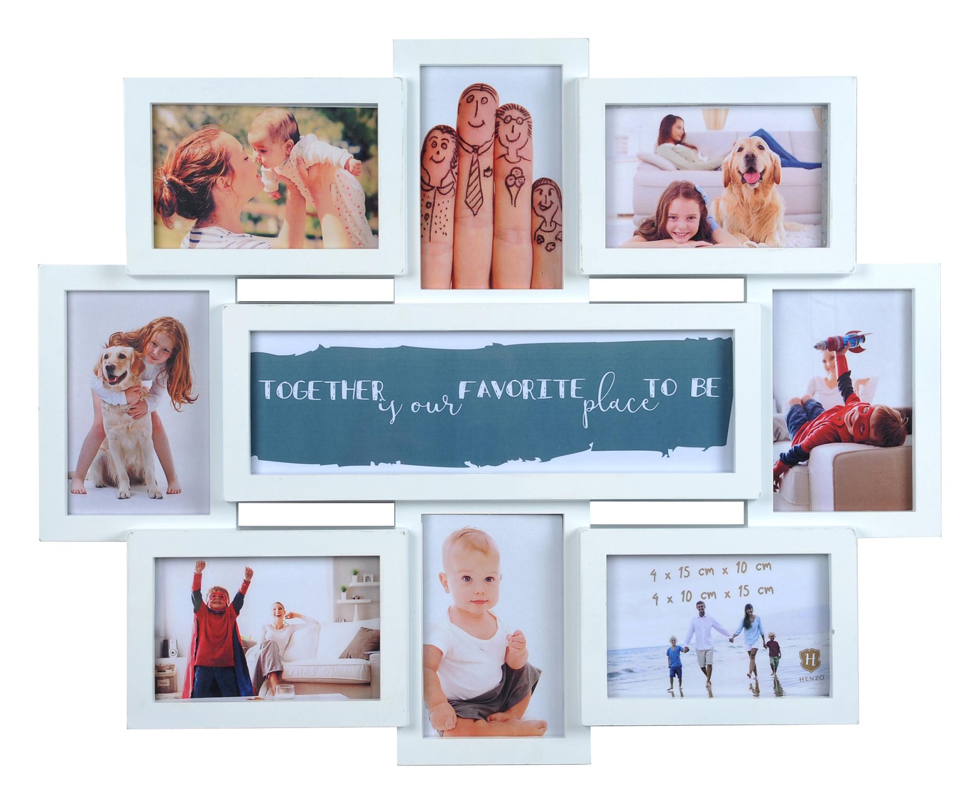 Rassemblez vos plus belles photos dans un magnifique cadre collage ! Ce cadre n'est pas seulement agréable à regarder, il est également intéressant à décorer ! Comprend 5 textes mignons avec différents thèmes que vous mettez dans le cadre du milieu (9e) et que vous remplacez lorsque vous en avez envie. Par exemple, vous pouvez insérer des textes tels que "All you need is love" ou "Say yes to family". Le cadre collage est disponible dans les couleurs noir et blanc.