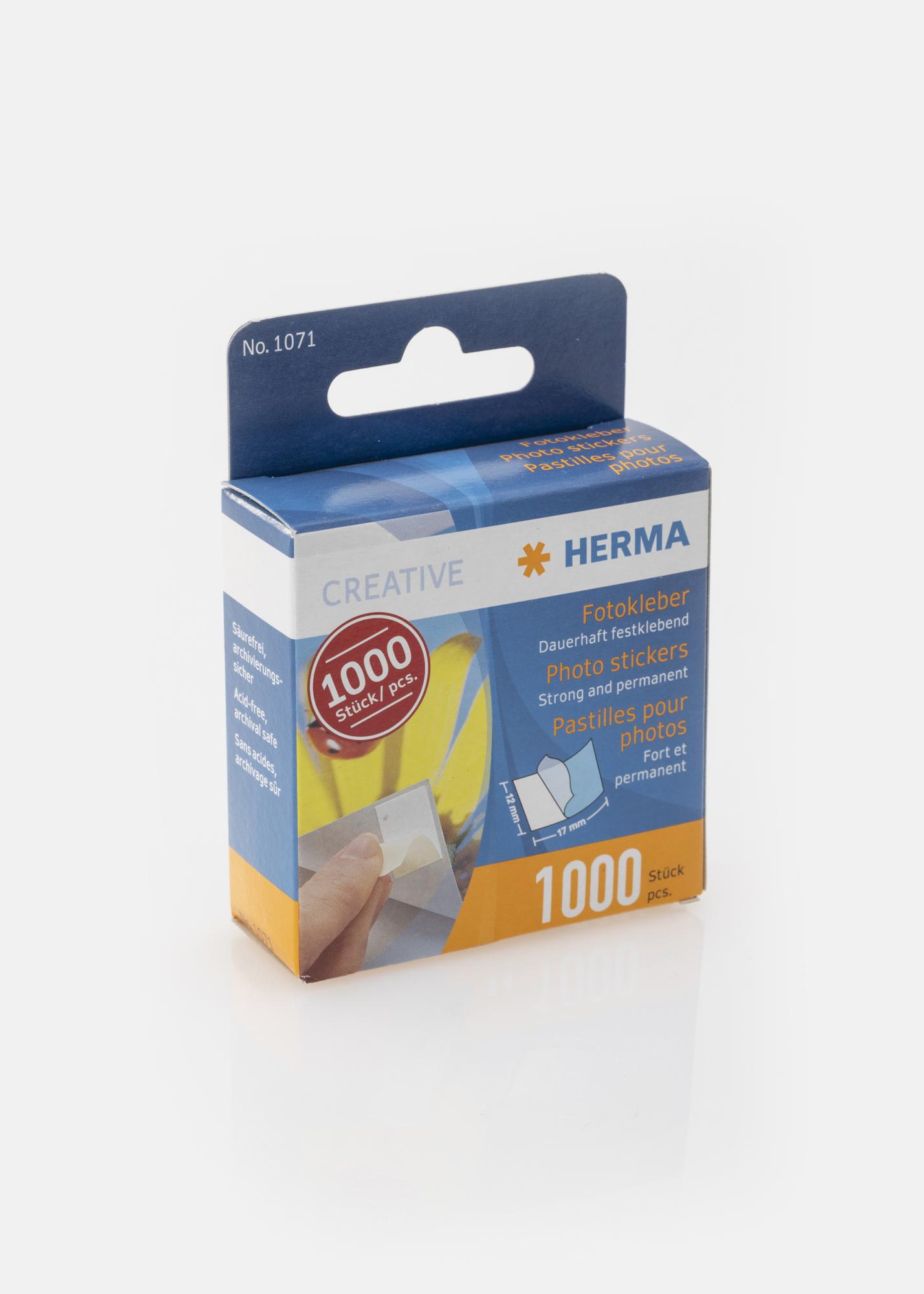 Les autocollants double face Herma Photo Stickers sont utilisés pour monter des photos de manière permanente. Le produit est bien sûr sans acide et sans danger pour vos photos. Le paquet contient un total de 1000 Photo Stickers.