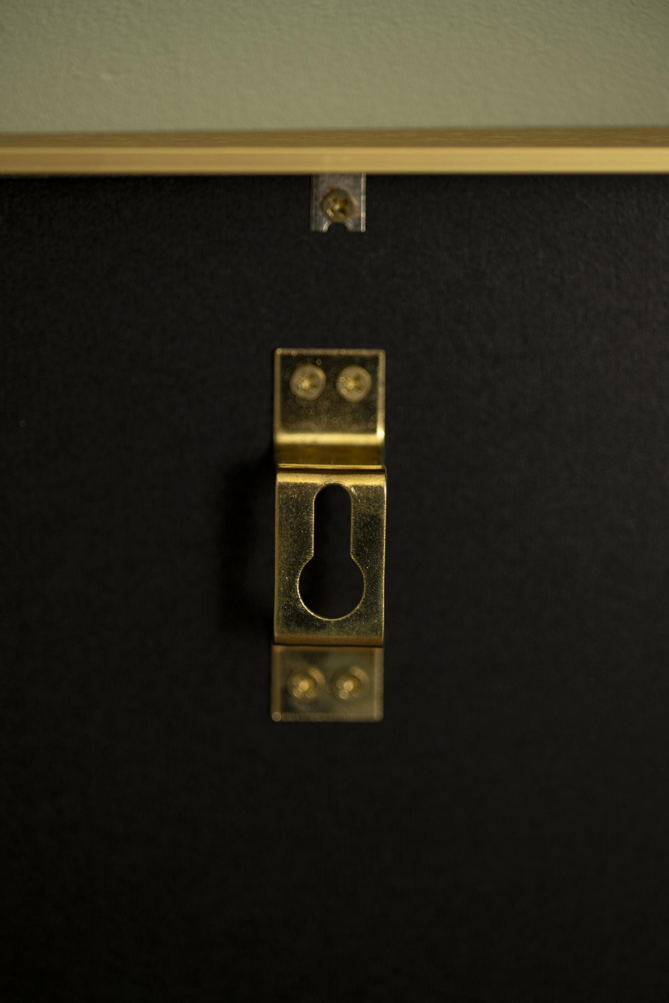 Voici un miroir mural esthétique par KAILA dans un beau design rétro. Le miroir est carré et mesure 41x41 cm. Le verre du miroir est encadré par un bord en laiton brossé, ce qui donne au miroir un caractère très esthétique tout en finesse, ce qui est également renforcé par son format carré. Ce miroir s'intègre bien dans le hall d'entrée, au-dessus du bureau ou pourquoi pas associé avec d'autres décorations murales et tableaux dans un joli mur de cadres.