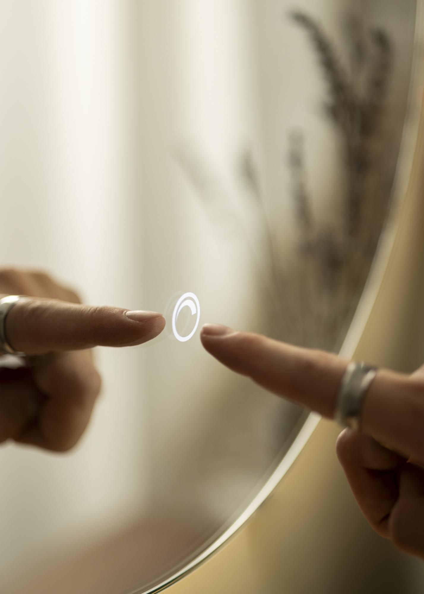 Voici un miroir de salle de bain classique de forme ronde par le suédois KAILA. Le miroir de salle de bain est doté d'un éclairage LED à intensité variable intégré sur son pourtour et qui projette une lumière vers l'arrière, ce qui projette une belle lueur blanche chaude vers l'avant en 3000K. L'éclairage peut s'atténuer, vous pouvez facilement régler la puissance de la luminosité en maintenant le bouton enfoncé pendant quelques secondes. La LED est une source de lumière écoénergétique qui fournit une lumière uniforme et naturelle.