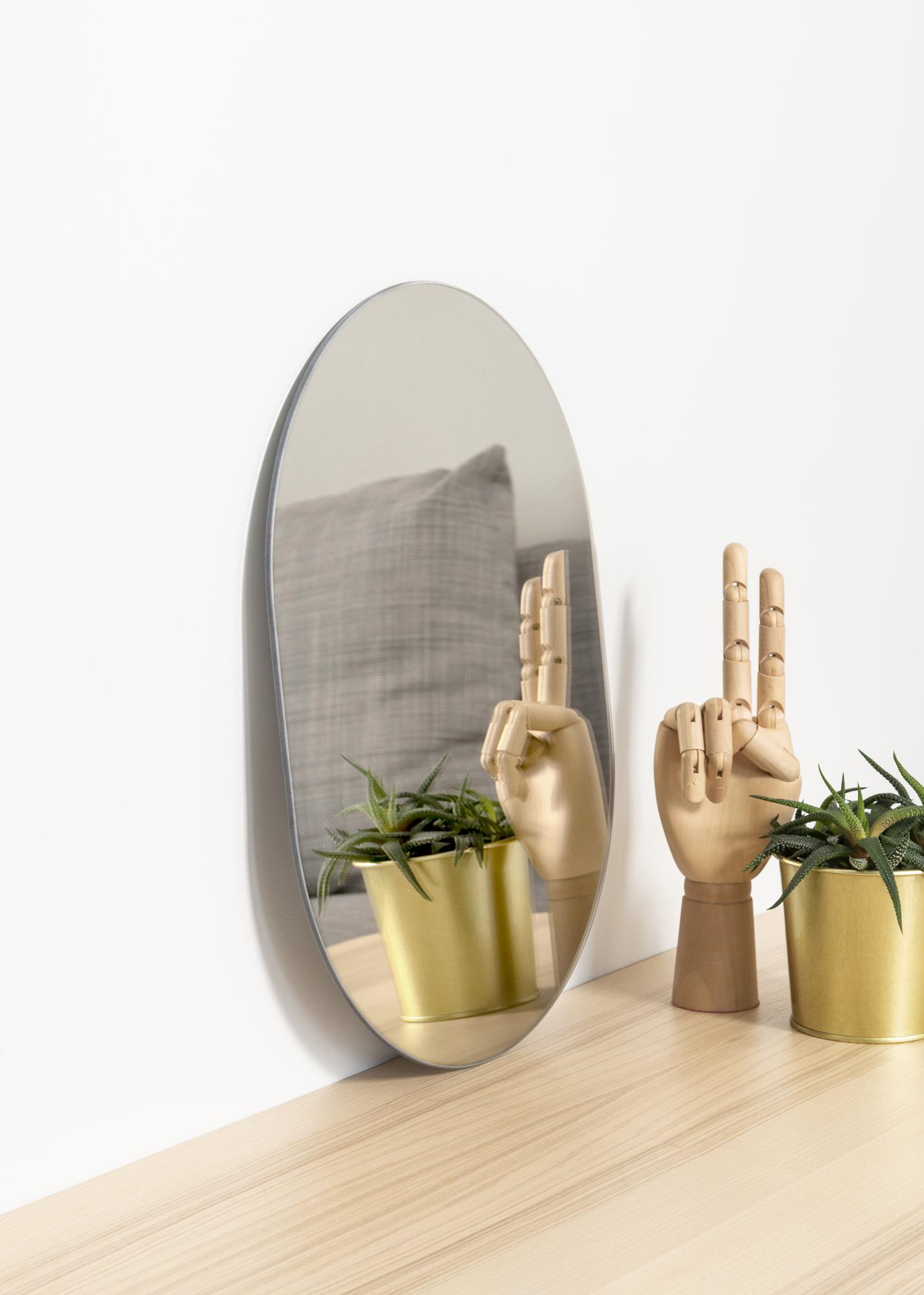 Un miroir ovale a des dimensions aussi pratiques qu'un miroir rectangulaire, avec la même élégance qu'un miroir rond : la forme de miroir quasi parfaite, en d'autres termes ! Ce miroir ovale est également très mince et n'a pas de cadre, ce qui amplifie l'aspect élégant.