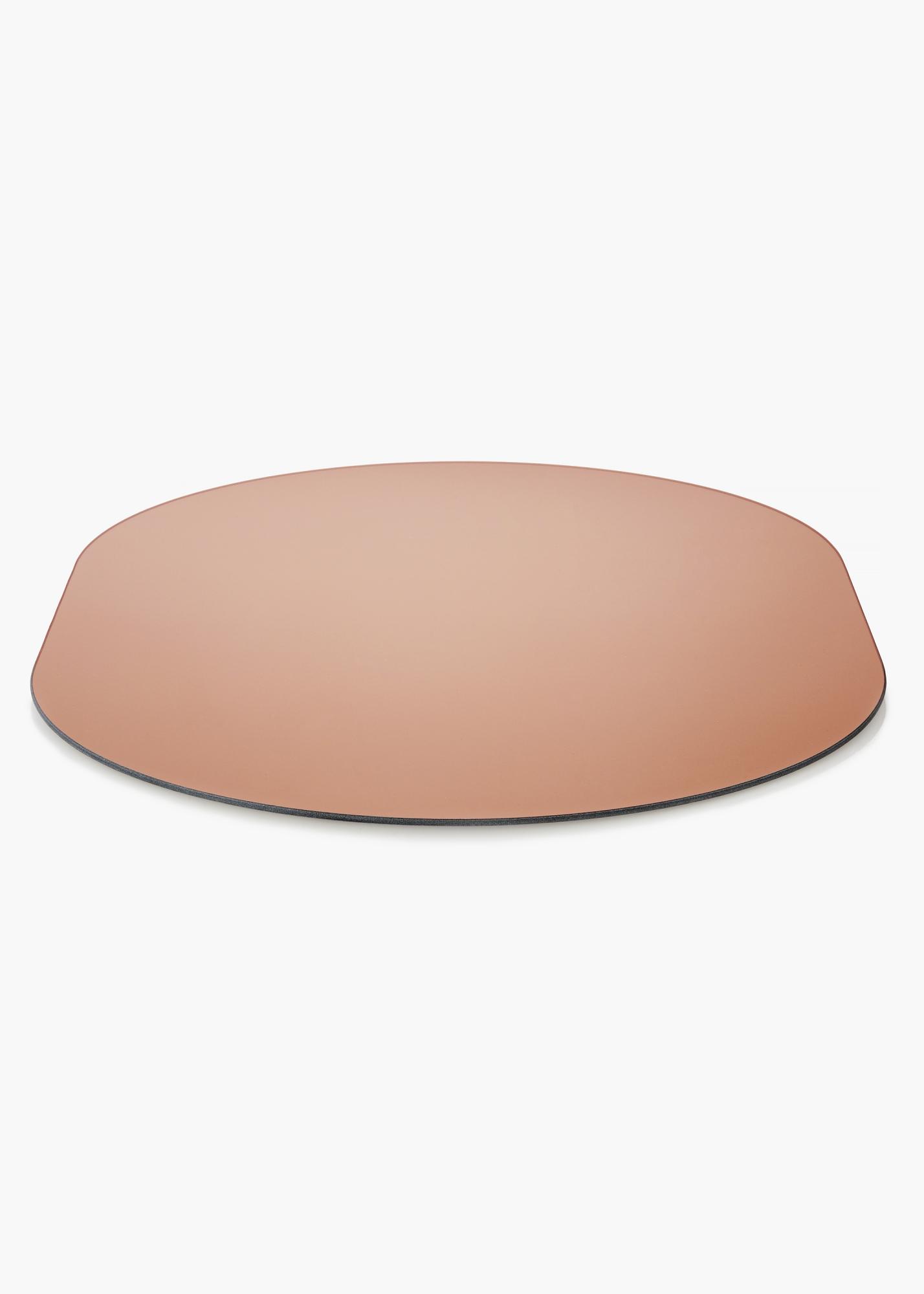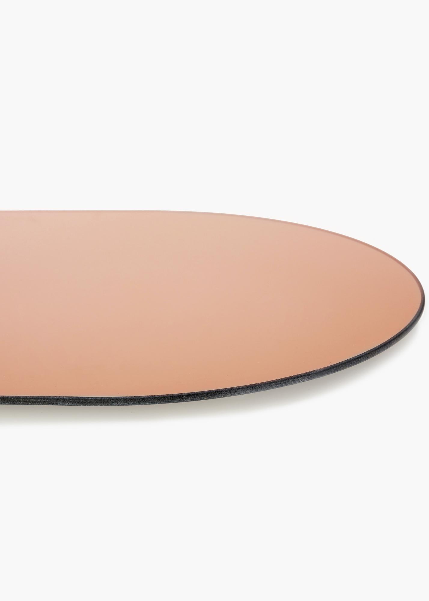 Un miroir ovale avec une sensation vraiment tendance ! Ce miroir ovale a un design élégant et moderne, car il est très mince et dépourvu de cadre. La sensation tendance est également renforcée par le verre miroir, qui est teinté dans une élégante nuance d'or rose. Un détail très efficace pour rehausser le design du miroir et le faire ressortir d'une manière élégante.