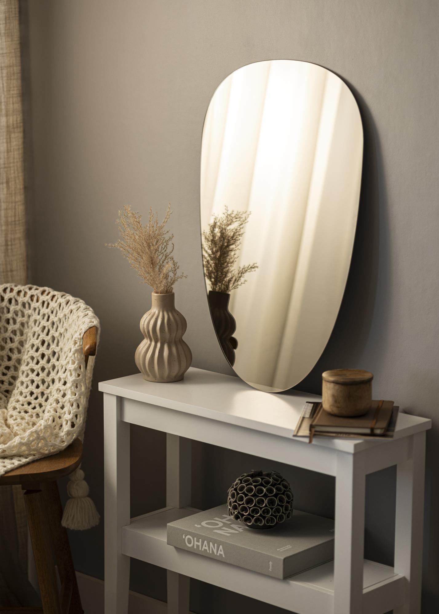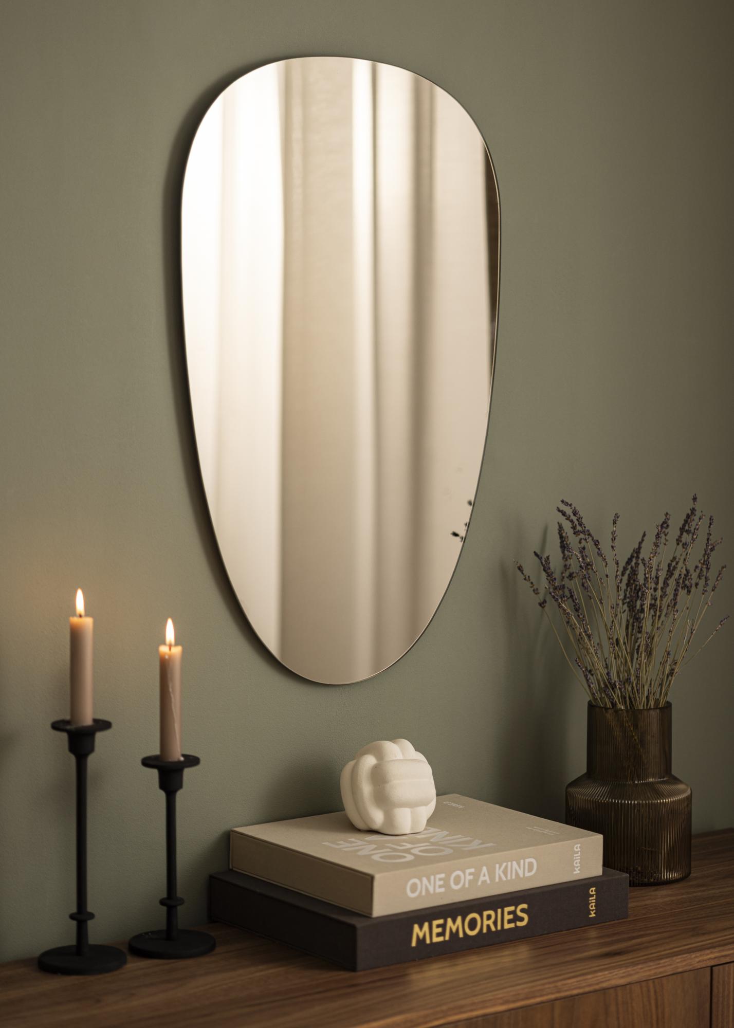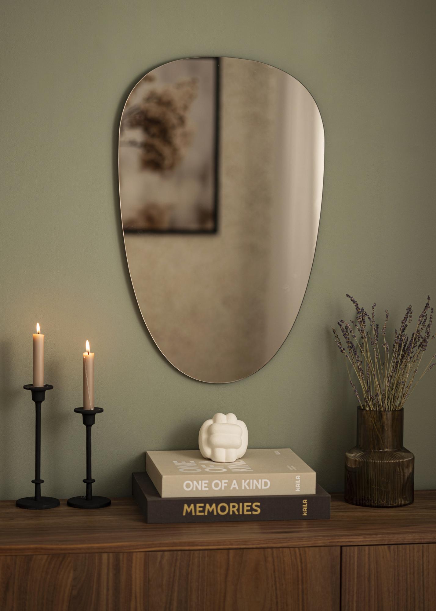 Ce miroir asymétrique aux formes douces et à l'aspect très élégant et tendance comporte un verre miroir teinté dans une élégante nuance de bronze foncé. Cela en fait un détail de décoration à l'effet assuré qui est facilement assorti à de nombreux schémas de couleurs différents. Le miroir est également très mince et n'a pas de cadre, ce qui amplifie son élégance et son allure tendance. Placez le miroir dans le vestibule, le salon, la chambre à coucher, ou dans n'importe quelle pièce où vous souhaitez ajouter de la fonctionnalité et un design nordique élégant !