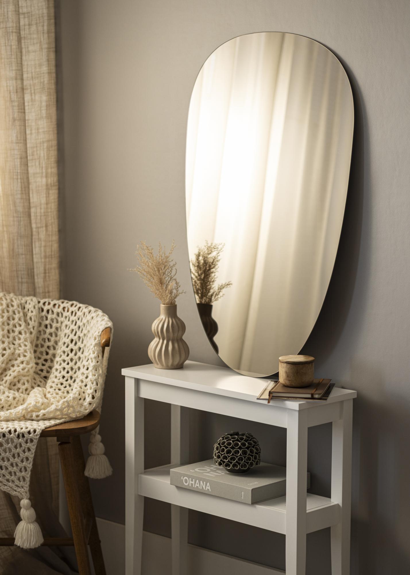 Ce miroir asymétrique aux formes douces et à l'aspect très élégant et tendance comporte un verre miroir teinté dans une élégante nuance de bronze foncé. Cela en fait un détail de décoration à l'effet assuré qui est facilement assorti à de nombreux schémas de couleurs différents. Le miroir est également très mince et n'a pas de cadre, ce qui amplifie son élégance et son allure tendance. Placez le miroir dans le vestibule, le salon, la chambre à coucher, ou dans n'importe quelle pièce où vous souhaitez ajouter de la fonctionnalité et un design nordique élégant !