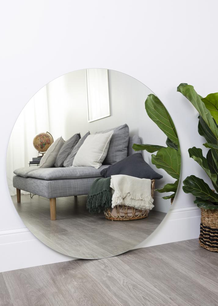 Miroir rond de 100 cm qui fait partie d'une série de miroirs ronds de KAILA. Disponible en 13 tailles pour que vous puissiez trouver la taille qui correspond parfaitement à votre pièce. Le miroir est extrêmement fin et élégant et s'adapte à tous les types de pièces et de styles de décoration.
