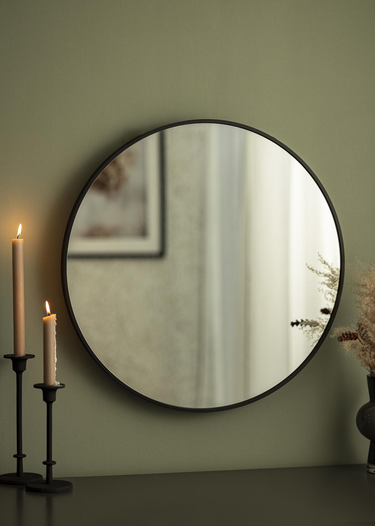 KAILA Round Mirror Edge Black est un miroir rond avec un cadre métallique fin et élégant en noir mat, ce qui lui donne un aspect industriel et tendance. Le cadre a, selon la taille, une profondeur comprise entre 30 et 40 mm, ce qui signifie que le verre du miroir sort un peu du mur et crée un effet 3D intéressant. La profondeur du cadre donne également au miroir une sensation de solidité tout en conservant son aspect minimaliste. Un miroir rond parfait à placer dans n'importe quelle pièce où vous souhaitez ajouter de la fonctionnalité et un design nordique élégant !