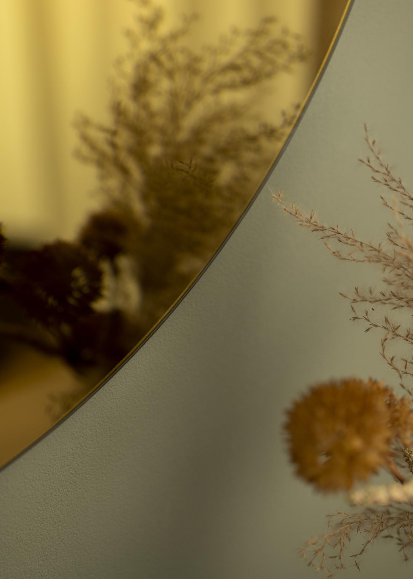 Ce miroir rond a un design magnifique avec un détail à l'effet assuré : un élégant verre miroir teinté or. Ce détail lui donne un aspect luxueux, ce qui, en combinaison avec la forme épurée du miroir, mince et sans cadre, crée un tout moderne et attrayant.
