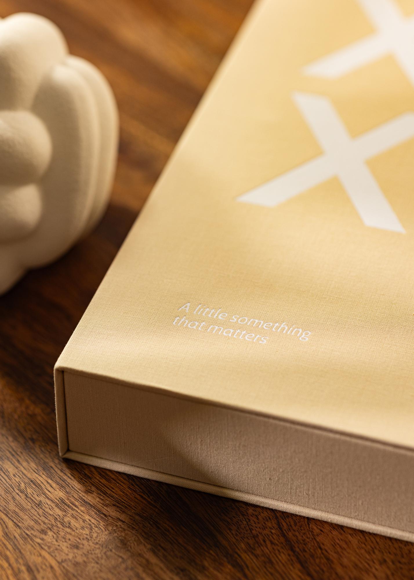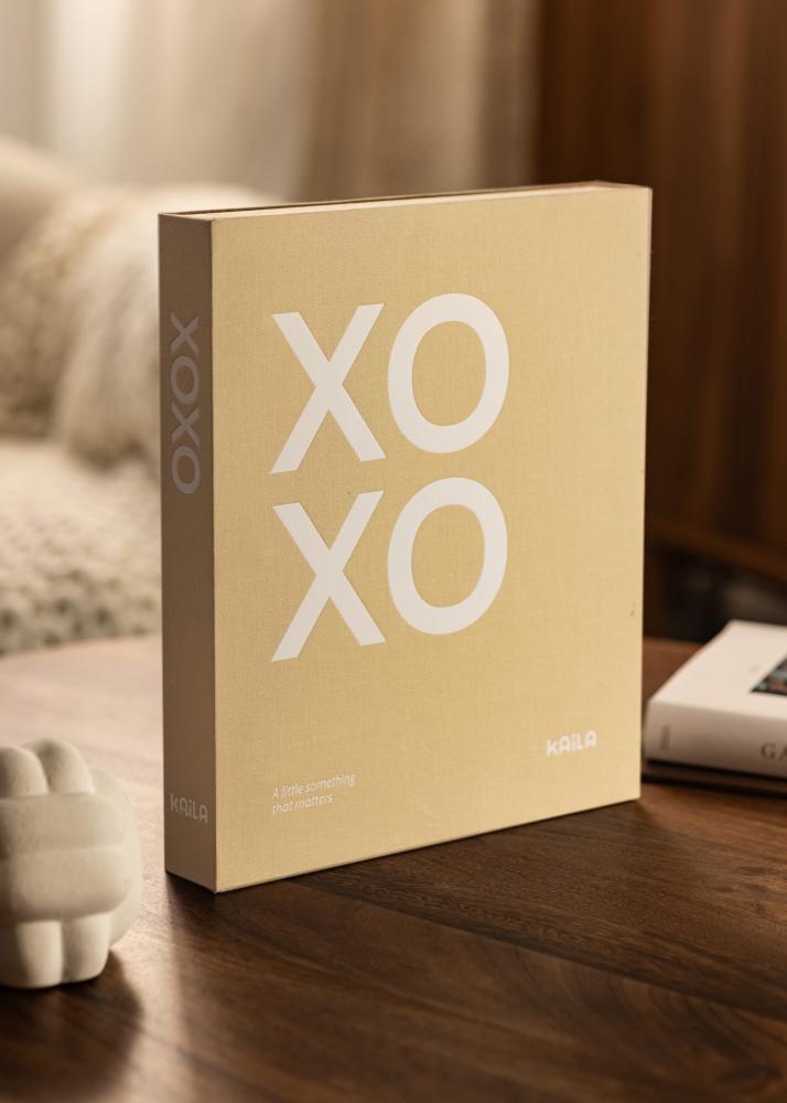 Ce bel abum photo est conçu comme un Coffee Table Book tendance et est également appelé unCoffee Table Photo Album. La couverture est élégamment habillée de textile beige et sur le devant et le dos de l'album se trouve un imprimé blanc avec la célèbre salutation d'au revoir "XOXO" qui signifie baisers et câlins. Ce titre tendance est également complété par un sous-titre qui précise "A little something that matters", imprimé dans le coin inférieur gauche de l'album. C'est un album photo très esthétique avec un design original et ludique qui est assuré de se démarquer de la foule.