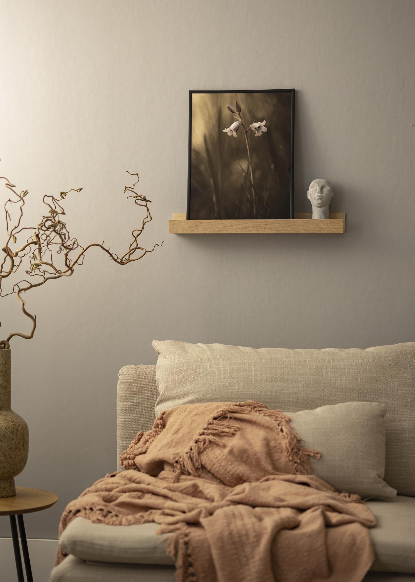 Notez que l'étagère pour cadre étant en chêne massif, des variations de couleur naturelles peuvent se produire. L'étagère porte-cadre est traitée avec une huile transparente protectrice.
